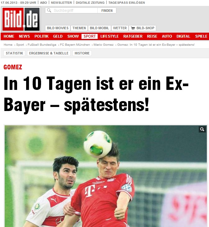Arrivano aggiornamenti direttamente dal sito della Bild sul fronte Mario Gomez. Il giocatore ha terminato le sue vacanze ad Ibiza e domani incontrerà il proprio agente per determinare il suo futuro. In piedi, oltre alla Fiorentina che appare sempre in pole, ci sono ancora la Juventus, l'Atletico Madrid ed il Manchester City. Il portale tedesco scrive anche che l'incontro di domani sarà quello determinante e entro questa settimana, il giocatore potrebbe addirittura effettuare le visite mediche per il suo nuovo club. Il Bayern per il momento ha parlato solo con la Fiorentina e con un'altra società. Il 26 giugno la rosa di Guardiola si ritroverà per il primo allenamento, ma è improbabile che il giocatore sia presente al ritrovo con il resto della squadra. Entro dieci giorni Mario Gomez sarà comunque un ex-giocatore del Bayern Monaco.