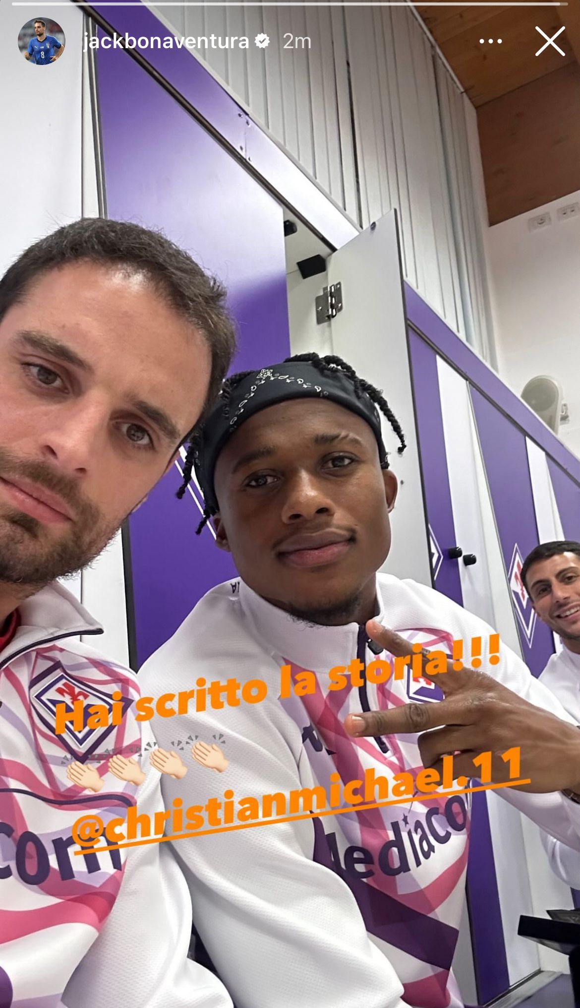 In attesa di capire quando farà ritorno in Italia e si metterà a disposizione di Vincenzo Italiano, Christian Kouame - fresco campione in Coppa d'Africa con la sua Costa d'Avorio - si sta prendendo le celebrazioni dei propri compagni di squadra per il trofeo da poco ottenuto. Tra i giocatori che hanno per primi manifestato tutto il loro affetto per l'esterno c'è stato Jack Bonaventura, che attraverso Instagram ha postato un selfie con il numero 99 e la scritta: "Hai scritto la storia!" con tanto di applausi.
