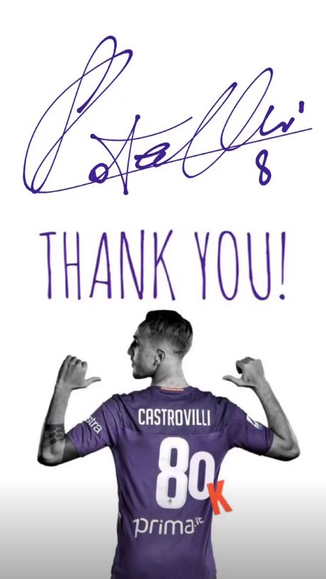 Dopo la prima convocazione con la Nazionale italiana di Gaetano Castrovilli è arrivata un'altra gioia per il centrocampista di proprietà della Fiorentina. Il profilo ufficiale Instagram del classe '97, infatti, ha raggiunto gli 80mila follower. Un ottimo traguardo anche grazie alle grandi prestazioni svolte fin qui con la maglia viola.