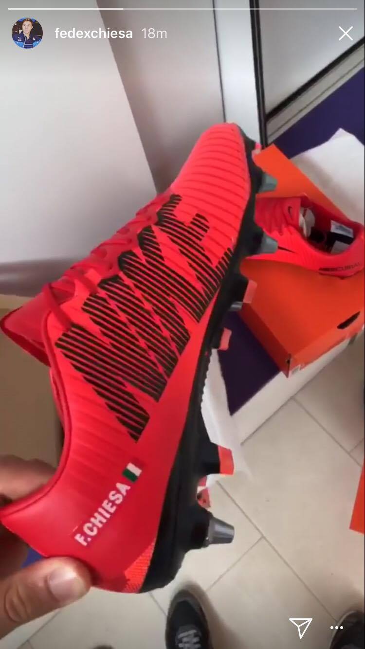 Novità per Federico Chiesa. L'attaccante viola ha mostrato, in una foto sulle Instagram Stories, le ultime scarpette da calcio con il suo nome scritto sopra. Ecco l'immagine delle calzature in questione: