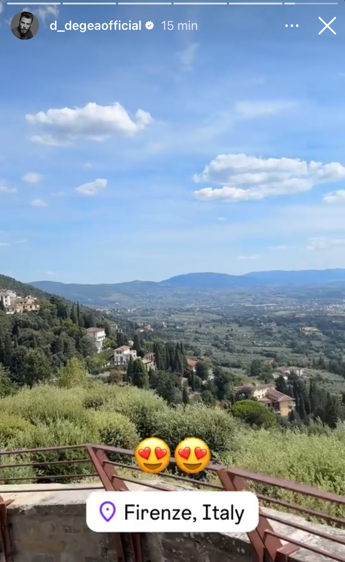 In attesa della conferenza stampa di presentazione prevista per domani (ore 14, diretta su Radio FirenzeViola), sembra già scoppiato l'amore tra David De Gea e la Fiorentina. A confermarlo è stato il portiere stesso che con una sua storia su Instagram ha immortalato (da Fiesole, probabilmente) il panorama del capoluogo toscano con una serie di emoticon di apprezzamento per la vista. Ecco uno screen del video postato dall'ex United: