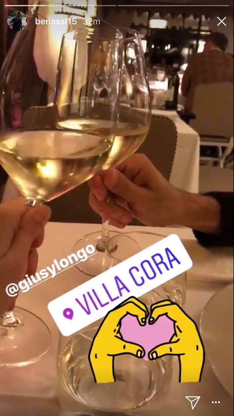 Cena romantica, questa sera, per Marco Benassi. Il giocatore viola ha approfittato della giornata libera per trascorrere più tempo possibile con la compagna, Giusy, imbastendo anche un pasto "a lume di candela" con tanto di vino bianco in una meravigliosa villa. Queste le foto postate dal centrocampista sulle Instagram Stories:
