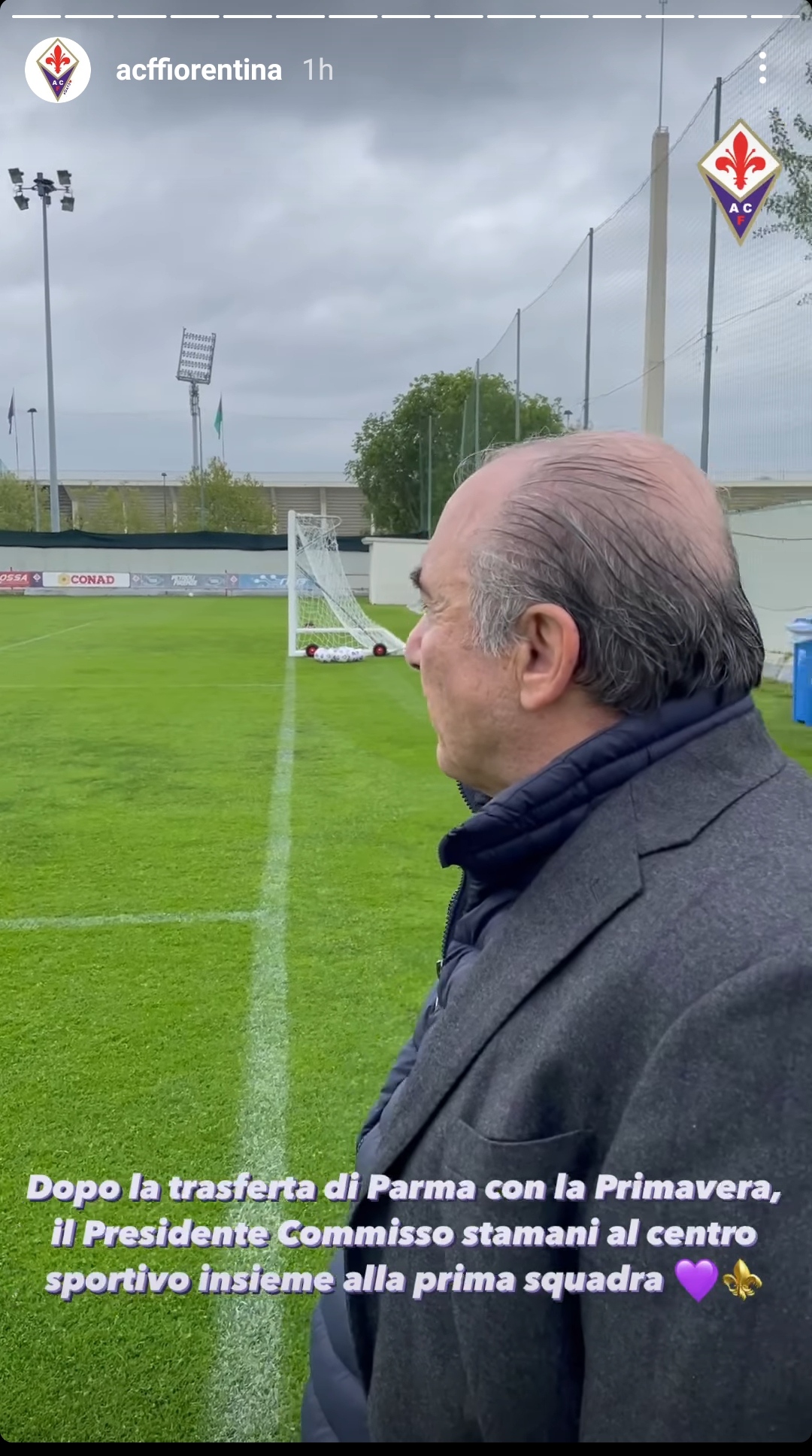 Dopo essersi goduto la vittoria della Fiorentina Primavera della Coppa Italia ieri sera a Parma, oggi Rocco Commisso ha seguito da vicino l'allenamento della prima squadra al centro sportivo. Lo mostra anche una foto pubblicata dai social della stessa società viola: