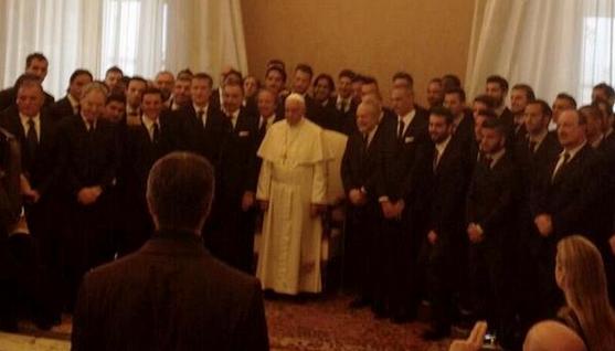 Fiorentina e Napoli in posa con il Papa. Questa la foto pubblicata su Twitter dal giornalista del Corriere dello Sport Pasquale Salvione che ritrae le due squadre in posa con il Santo Padre.