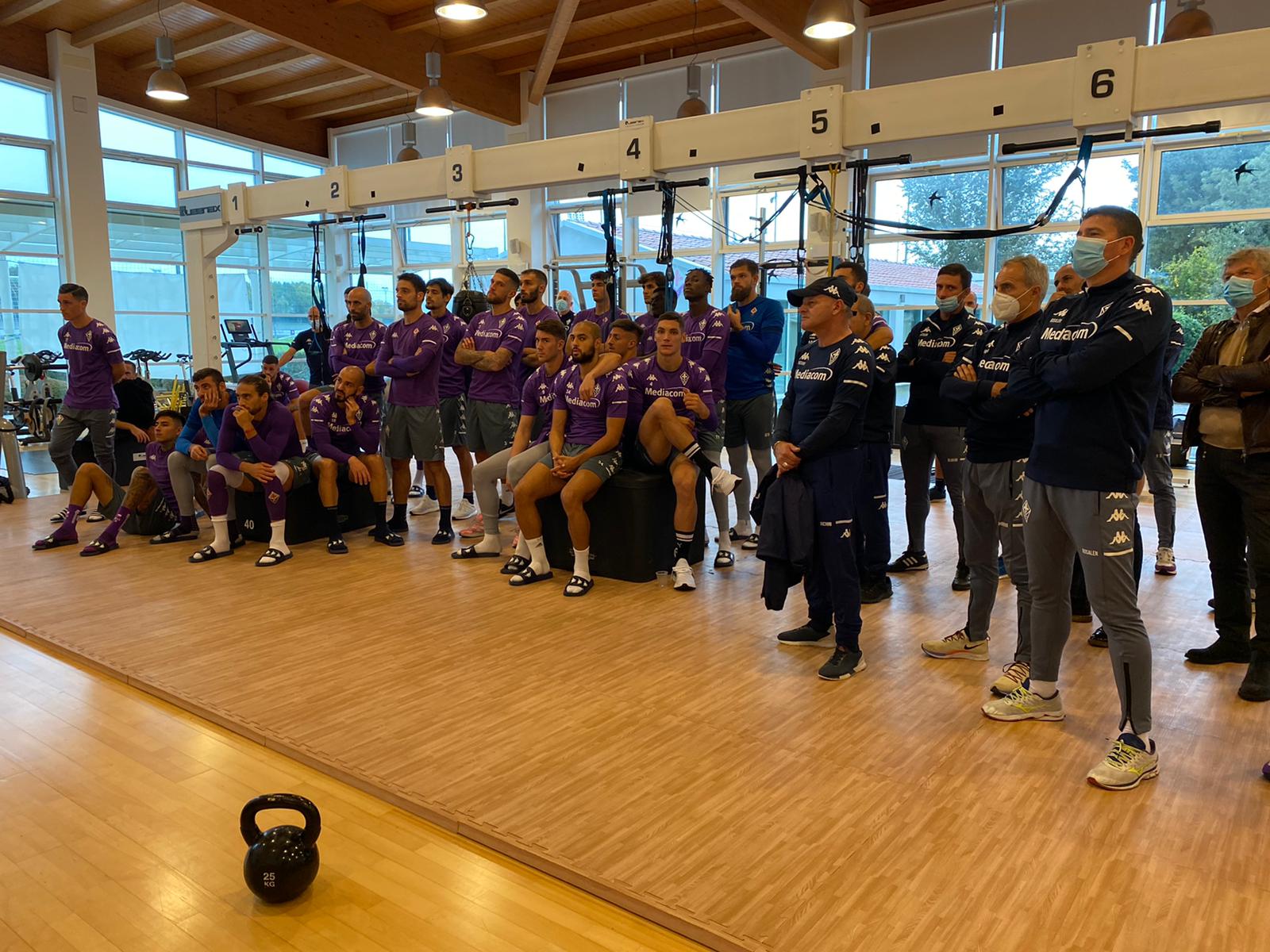 Il Presidente Commisso, nonostante l'impossibilità di essere fisicamente accanto alla squadra, ha voluto lo stesso, in diretta streaming, mostrare la propria vicinanza. Il Presidente per prima cosa si è voluto sincerare dello stato di salute di tutti. Ha poi ribadito che il gruppo, dopo le critiche ricevute nei giorni scorsi, ha ora l’opportunità di mostrare il proprio effettivo valore, quello di una buona squadra, più forte dell’anno scorso. Commisso ha sottolineato l'importanza del gruppo, del giocare di squadra, l'uno per l'altro, proprio quello che diceva ai suoi compagni quando era capitano della sua squadra. Ha chiesto ai calciatori più esperti di aiutare i più giovani a crescere e trovare uno spirito di squadra, evidenziando l'importanza di tutti, sia di coloro che partono titolari, sia coloro che iniziano dalla panchina. Il Presidente ha anche ricordato l'importanza di avere Mediacom sulla propria maglia, con oltre 15000 persone che tifano dall'America e che vorrebbe come anche la Fiorentina seguisse un percorso di successi e crescita costante come l'azienda americana fa ormai da 24 anni. Rocco ha ribadito come la Proprietà e tutta la Dirigenza siano a fianco della squadra ed è certo che lo sia anche tutta la Famiglia Viola ma tutti si aspettano, già da domani, il massimo impegno e compattezza per dimostrare il proprio attaccamento ai colori viola. Il Presidente ha chiosato dicendo al gruppo che domani insieme a sua moglie festeggeranno il loro quarantacinquesimo anniversario di matrimonio e si aspettano un bellissimo regalo dalla squadra.