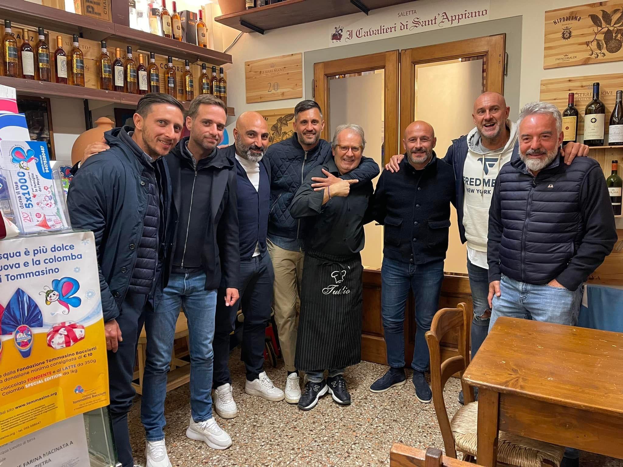 Cena di gruppo per la Fiorentina, non per la squadra ma per lo staff in questo caso. Il tecnico viola Vincenzo Italiano, infatti, per festeggiare la vittoria contro il Napoli ma non solo, ha deciso di portare tutti i suoi collaboratori a cena fuori da Tullio a Montebeni, ristorante della fondazione Tommasino Bacciotti. Questa la foto della serata con l'allenatore della Fiorentina con il suo staff pubblicata dal ristorante sulla propria pagina Facebook: