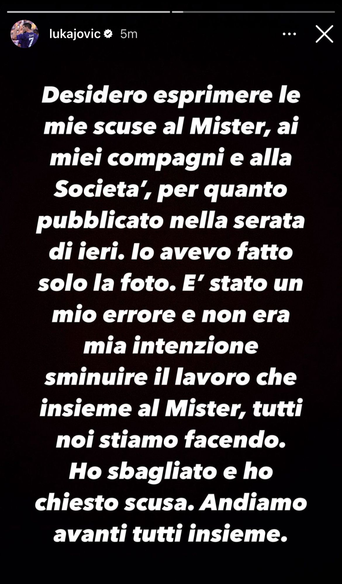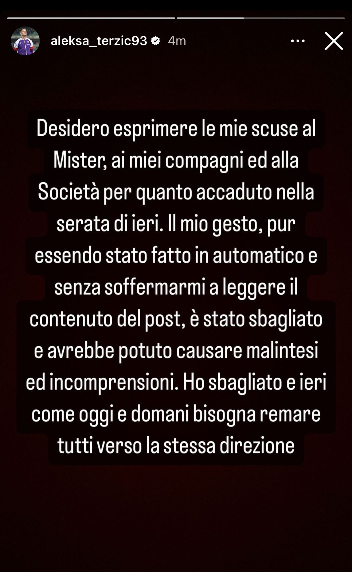 Arrivano le scuse di Luka Jovic e Aleksa Terzic dopo il caso social esploso in mattinata. I due serbi, attraverso il proprio profilo Instagram, hanno detto la loro a seguito delle polemiche venute fuori per la foto ripostata da entrambi sulle scelte fatte da Vincenzo Italiano per la gara col Basilea: "Desidere esprimere le mie scuse al mister, ai miei compagni e alla società, per quanto pubblicato nella serata di ieri. Io avevo fatto solo la foto. È stato un mio errore e non era mia intenzione sminuire il lavoro che insieme al mister, tutti noi stiamo facendo. Ho sbagliato e ho chiesto scusa. Andiamo avanti tutti insieme", si legge sui social dei giocatori. Qua sotto le foto: