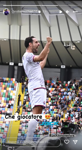 L'attaccante della Fiorentina Christian Kouame, dopo la bella vittoria all'Udinese Arena contro i bianconeri, ha pubblicato una storia Instagram del suo compagno Giacomo Bonaventura mentre esulta per il gol del definitivo 2-0. L'ivoriano, inoltre, ha aggiunto la descrizione "Che giocatore" per complimentarsi con il suo compagno di squadra. Di seguito la foto: