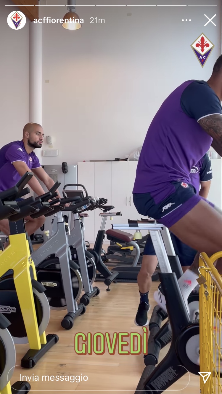 La Fiorentina ha sostenuto una seduta di allenamento questa mattina in vista dell'incontro di domenica col Napoli di Spalletti. I viola si sono intrattenuti anche in palestra, lo testimoniano le foto postate dallo stesso club di viale Fanti sulle proprie Instagram Stories che mostrano Igor e Amrabat sulla cyclette e Torreira durante una sessione di addominali: