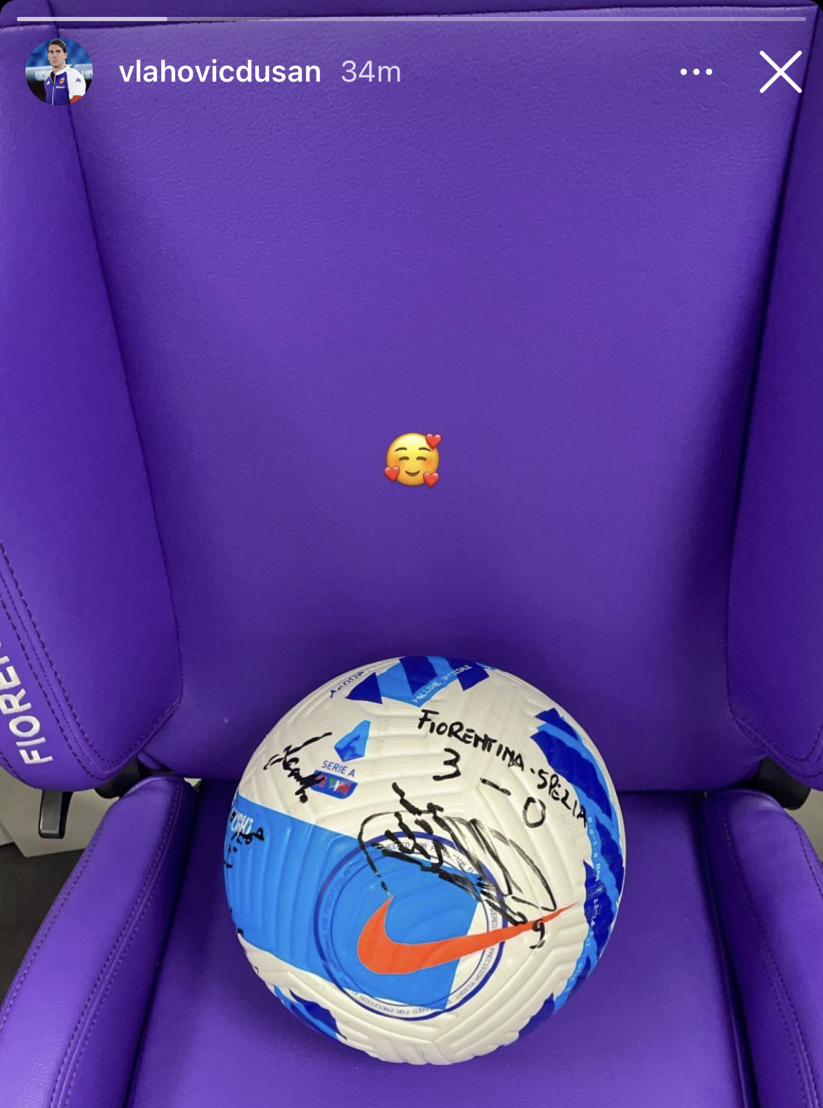 Come ogni tradizione che si rispetti, anche oggi dopo la tripletta realizzata contro lo Spezia Dusan Vlahvoic si è portato a casa il pallone con cui ha siglato il suo secondo tris da quando gioca alla Fiorentina e soprattutto grazie al quale oggi ha regalato ai viola tre preziosissimi punti che permettono alla Fiorentina di tornare al successo e di salire a quota 18 punti in classifica.