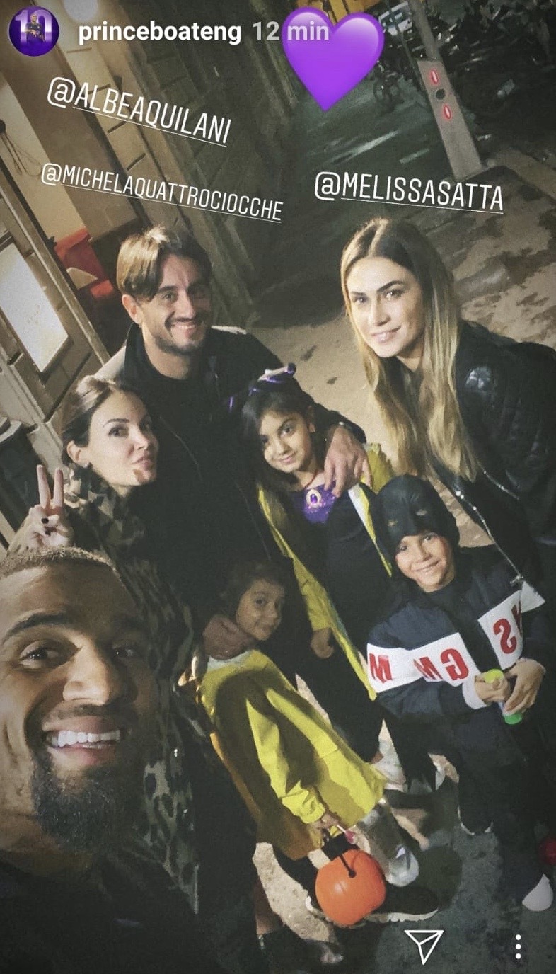 Notte di Halloween anche per alcuni componenti della Fiorentina. Come mostrato su Instagram dall'attaccante dei viola Kevin Prince Boateng, il ghanese assieme alla moglie Melissa Satta e al figlio (travestito per l'occasione) ha scelto di fare una passeggiata per le vie del centro di Firenze in compagnia del tecnico degli Under 18 Alberto Aquilani, della consorte Michela Quattrociocche e dei due figli. Ecco la foto pubblicata sui social del numero 10: