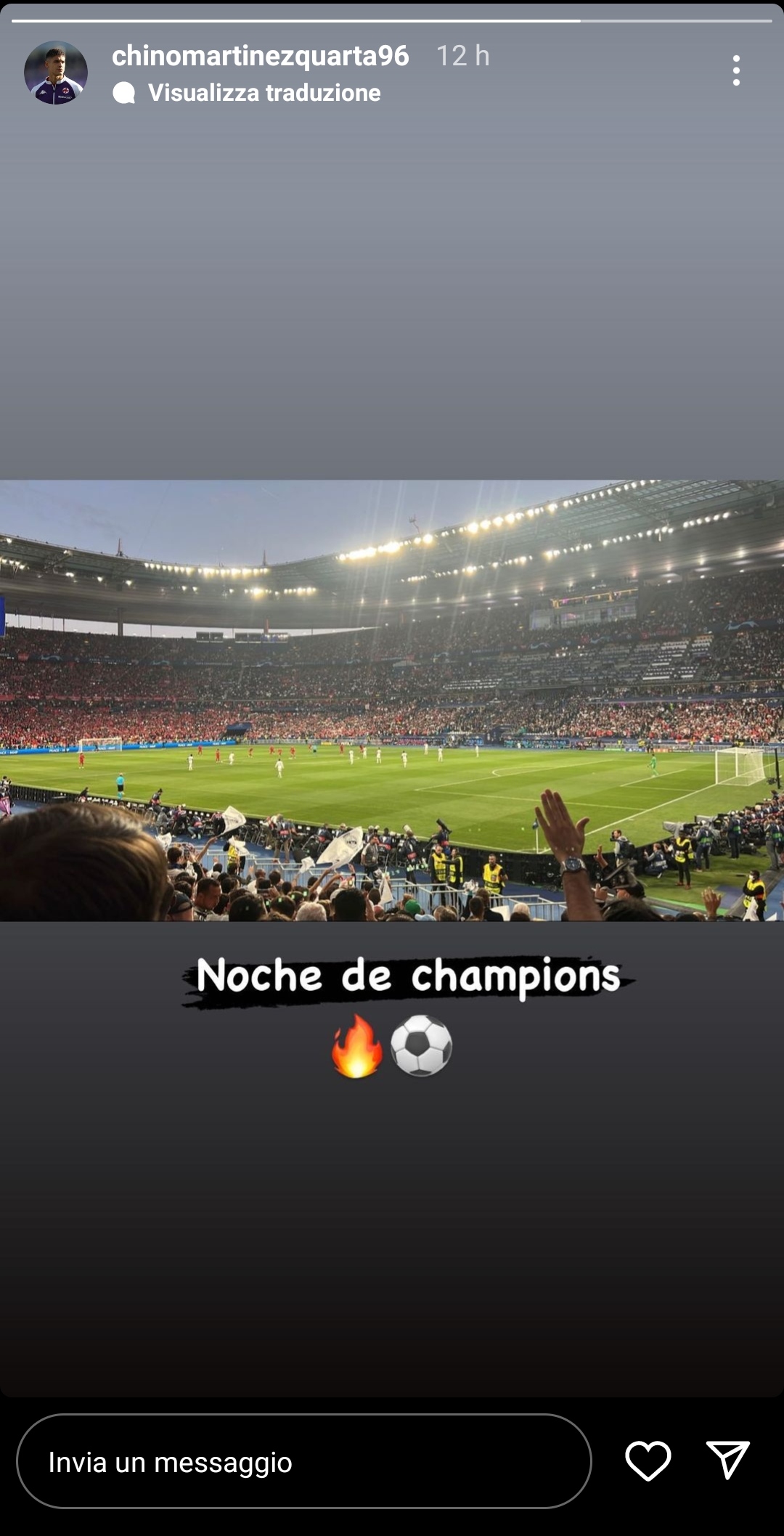 C'era anche Martinez Quarta ieri sera allo Stade de France di Parigi per godersi una finale di Champions League vinta 1-0 dal Real Madrid con un gol di Vinicius nel secondo tempo. Lo ha testimoniato lo stesso difensore della Fiorentina pubblicando una foto dallo stadio con la didascalia: "Notte di Champions", in spagnolo. Ecco l'immagine:
