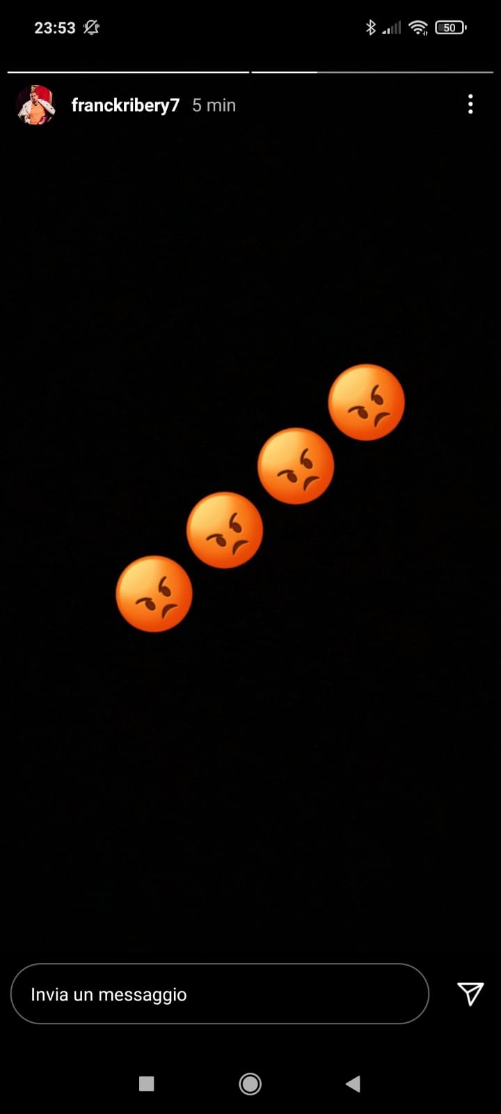Con un stories Instagram sul suo profilo ufficiale, Franck Ribery ha espresso probabilmente il suo stato d'animo dopo la gara di stasera, persa allo scadere per 2-1 contro la Roma. Qui sotto la foto postata dal francese con delle emoticon che mostrano il suo umore.
