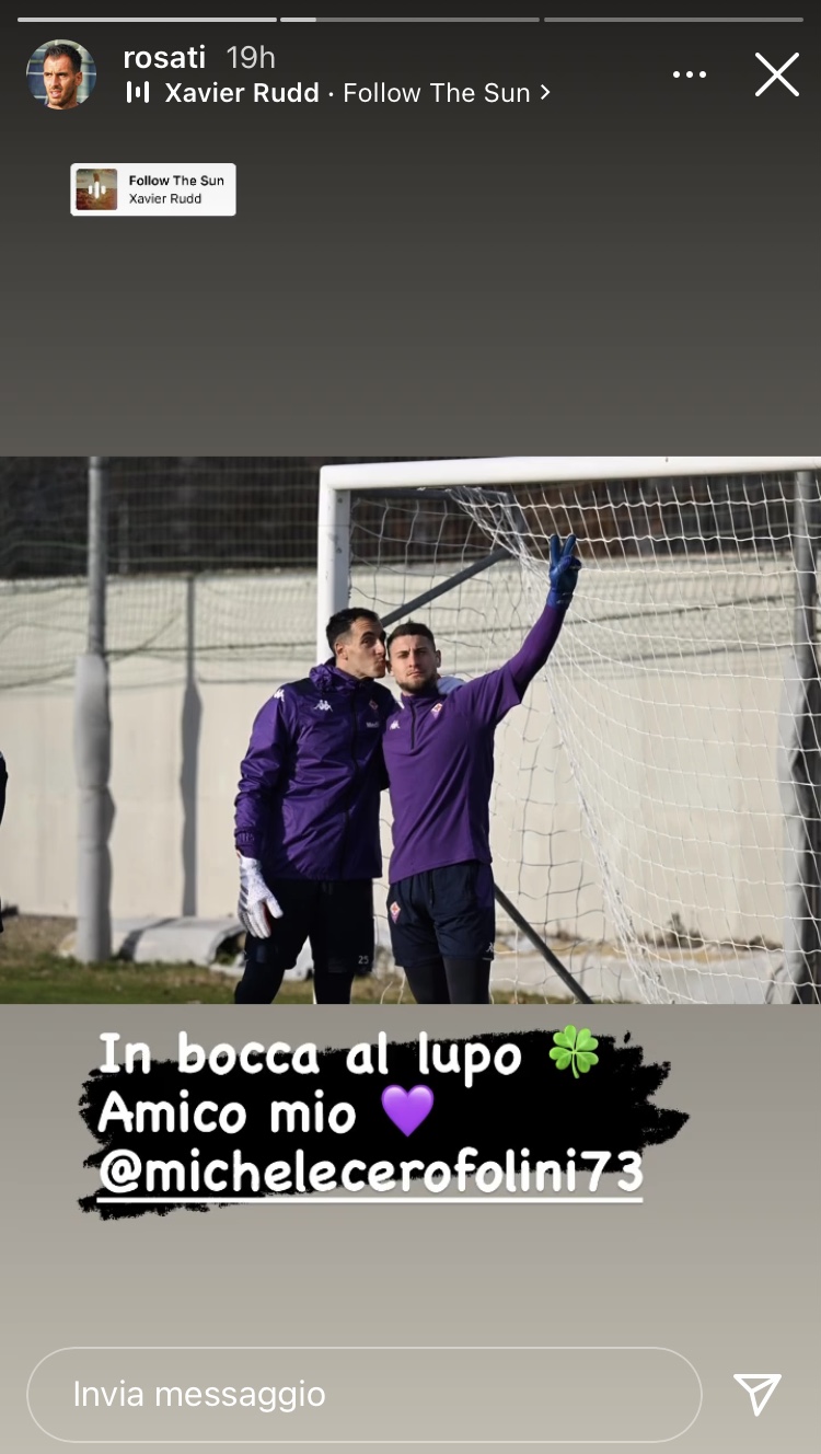Come anticipatovi ieri da FirenzeViola.it, il portiere Michele Cerofolini è passato in prestito all'Alessandria. Il suo ormai ex compagno di reparto in maglia viola, Antonio Rosati, ha pubblicato una Instagram Story coi suoi saluti al classe '99 e con su scritto: "In bocca al lupo amico mio".
