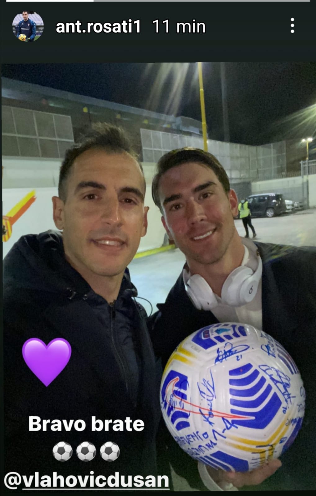 Anche il terzo portiere della Fiorentina Antonio Rosati ha voluto celebrare Dusan Vlahovic e la sua tripletta contro il Benevento. "Bravo brate", ha scritto sulle sue Instagram Stories a corredo di una foto dei due fuori dallo stadio. Eccola: