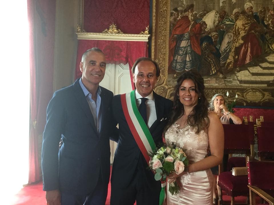 L'ex difensore della Fiorentina Celeste Pin si è sposato questa mattina a Palazzo Vecchio, dopo un lungo fidanzamento con la compagna Gloria. A celebrare il rito è stato il giornalista e opinionista di FirenzeViola.it Mario Tenerani, il quale ha anche postato la foto con gli sposi sui social:
