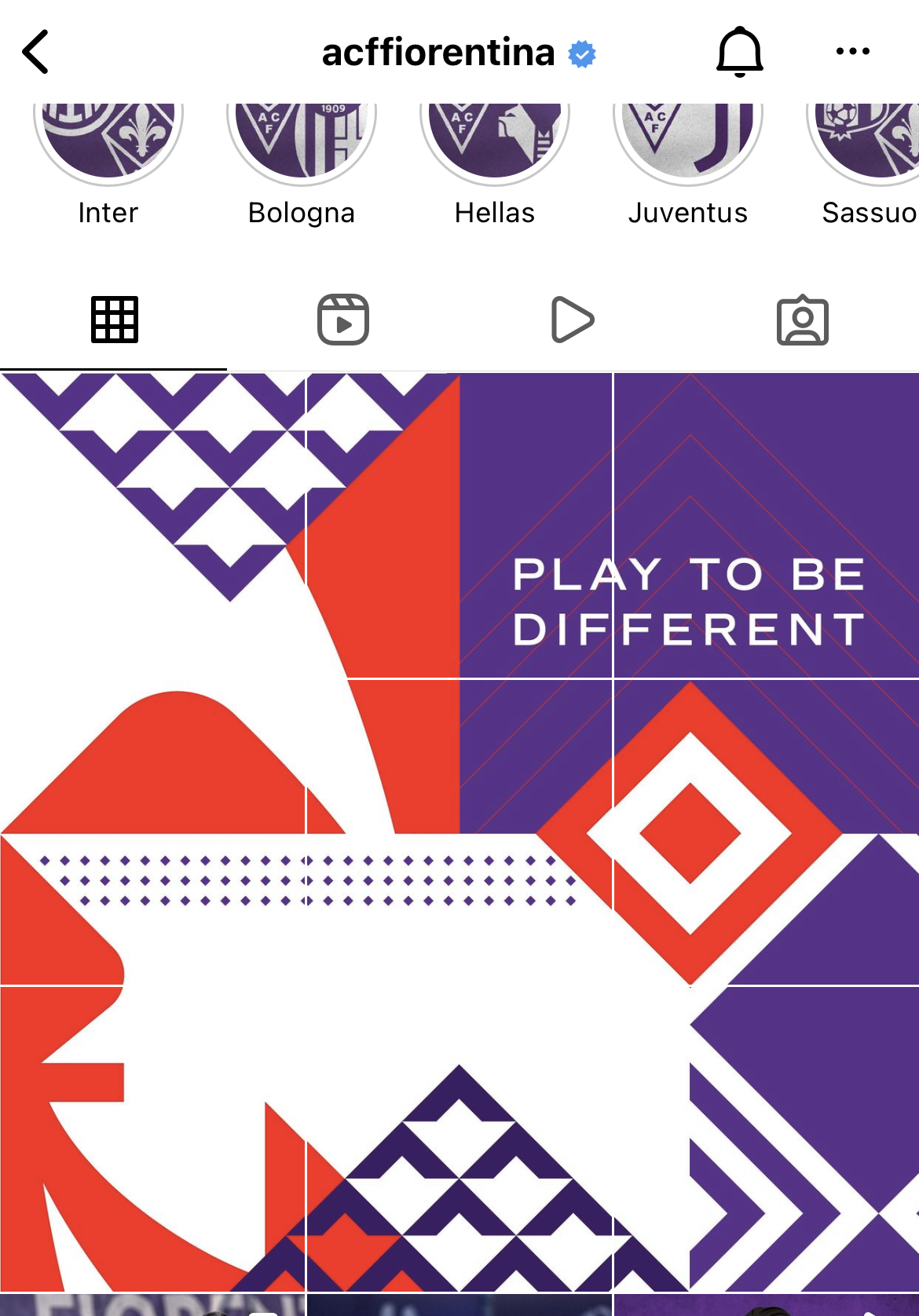 Primi indizi social della Fiorentina per quanto riguarda il nuovo stemma. Come FirenzeViola aveva anticipato, in questi giorni sono comparsi in città delle immagini-collage enigmatiche a tinte viola, bianco e rosso ed era stata la Fiorentina stessa che aveva fatto proiettare sulle decine di videowall sparsi per la città il probabile nuovo profilo dello stemma, unito ad una scritta simbolica: “Play to be different”. Adesso l'immagine-collage, formato da una serie di post è stata postata anche su Instagram. Che sia sempre più imminente l'annuncio del nuovo logo?