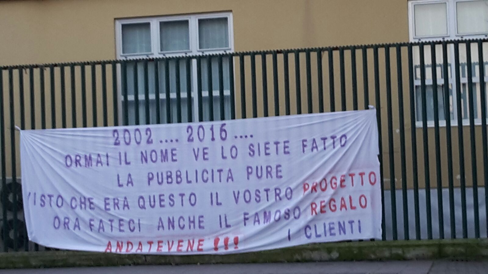 FOTO, Striscione polemico contro la società