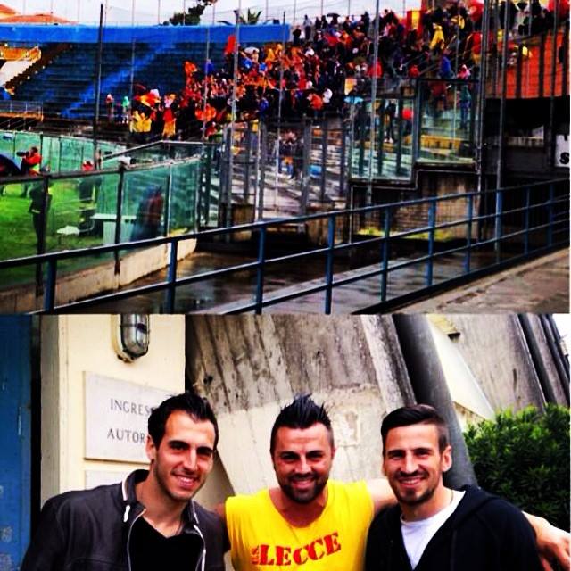Pubblico speciale oggi all'Arena Garibaldi di Pisa per il match d'alta classifica tra i nerazzurri padroni di casa ed il Lecce. Ad assistere allo scontro tra toscani e salentini erano infatti presenti anche i viola Nenad Tomovic e Antonio Rosati, entrambi ex giocatori del club pugliese che hanno sfruttato il pomeriggio libero per andare a tifare la loro ex squadra, che però è stata sconfitta per 1-0 grazie al gol al 12' di Giovinco (fratello dell'attaccante della Juventus). Questa la foto pubblicata pochi istanti fa dal difensore gigliato sul suo profilo Facebook: