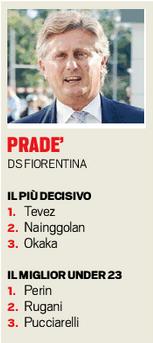L'edizione odierna di Tuttosport propone i risultati di un sondaggio che il quotidiano ha posto a 20 rappresentati (tra allenatori, presidenti e dirigenti sportivi) dei club di Serie A su chi sia il giocatore più decisivo del nostro campionato e chi, invece, l'Under23 più promettente. A rappresentare la Fiorentina c'era il ds Daniele Pradè che per correttezza nelle sue scelte non ha voluto citare giocatori viola per evitare conflitto d'interessi: per il dirigente gigliato, il giocatore più decisivo è Carlos Tevez della Juve (seguito da Nainggolan ed Okaka) mentre per i giovani il ds ha scelto Perin, Rugani e Pucciarelli. Proprio quel Pucciarelli che il procuratore Moreno Roggi, per personale ammissione, proverà un giorno a portare alla Fiorentina (LEGGI QUI).