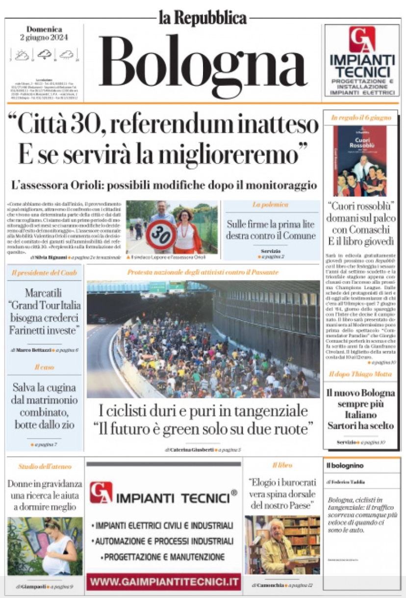 "Il nuovo Bologna sempre più Italiano. Sartori ha scelto". Questo il titolo in prima pagina dell'edizione bolognese de La Repubblica. Il riferimento è al nuovo Bologna che sta nascendo. La società rossoblù, dopo la storica qualificazione in Champions League perde il suo allenatore Thiago Motta. Il tecnico passerà il prossimo luglio alla Juventus. Per la successione si pensa a Vincenzo Italiano, che con la Fiorentina ha conquistato la finale di Conference League perdendola contro l’Olympiakos. Anche per il quotidiano non ci sono dubbi sulla volontà dei felsinei di puntare sull'ex allenatore dello Spezia, che oggi chiuderà il suo triennio alla guida della Fiorentina.