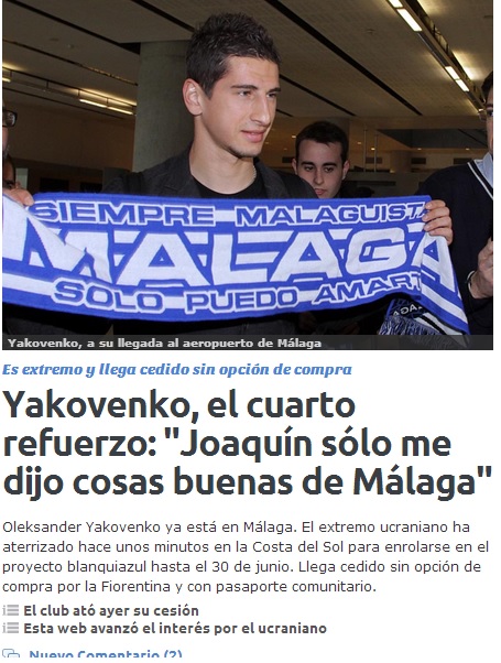 Iakovenko è a Malaga, come testimoniato dalla foto pubblicata del media spagnolo eldesmarquemalaga.com. L'esterno ucraino ha rilasciato alcune dichiarazioni al suo arrivo nella Costa del Sol: "Ho parlato con Joaquin, mi ha detto tante cose belle sul Malaga, suoi miei nuovi compagni e sui tifosi. Sono pronto per scendere in campo, voglio giocare e vincere tante partite per risalire in classifica. Sono molto felice per questa mia nuova avventura in Spagna".