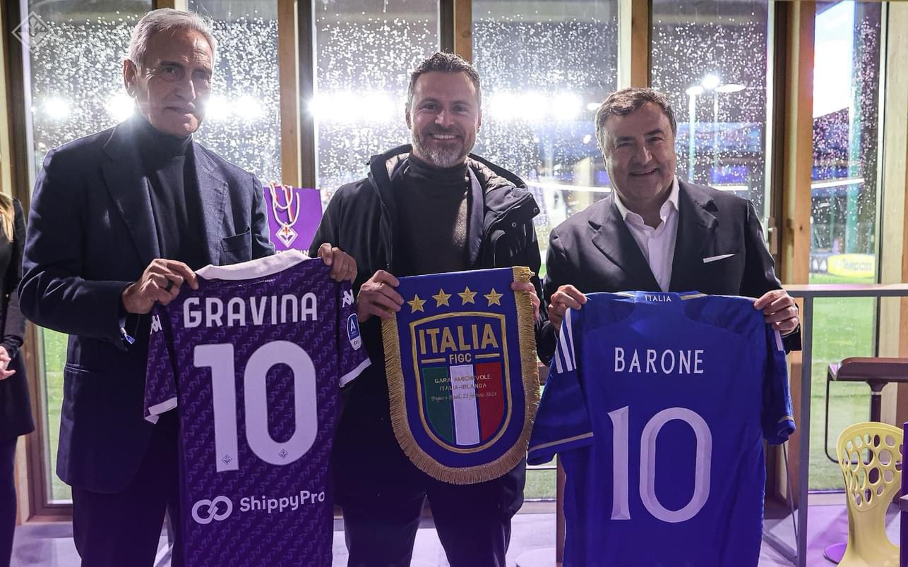 Il Presidente federale ha ringraziato il Sindaco stesso e l'Amministrazione Comunale per l'ospitalità e la collaborazione garantite per la riuscita dell'evento internazionale. Un evento internazionale di assoluto livello che ha dato lustro al Comune di Bagno a Ripoli e a alla città di Firenze. Il Presidente Gravina ha omaggiato il Comune con un gagliardetto FIGC ricordo dell'evento". Nella foto sotto (scattata dalla Fiorentina) lo scambio di maglie e gagliardetti.