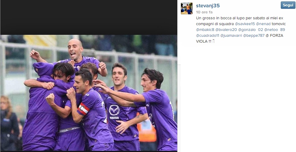 Alla vigilia della gara più importante della stagione per la squadra viola, arrivano anche il supporto dell'ex attaccante viola Stevan Jovetic che sul suo profilo Instagram ha scritto: "Un grosso in bocca al lupo per sabato ai miei ex compagni di squadra. FORZA VIOLA!".