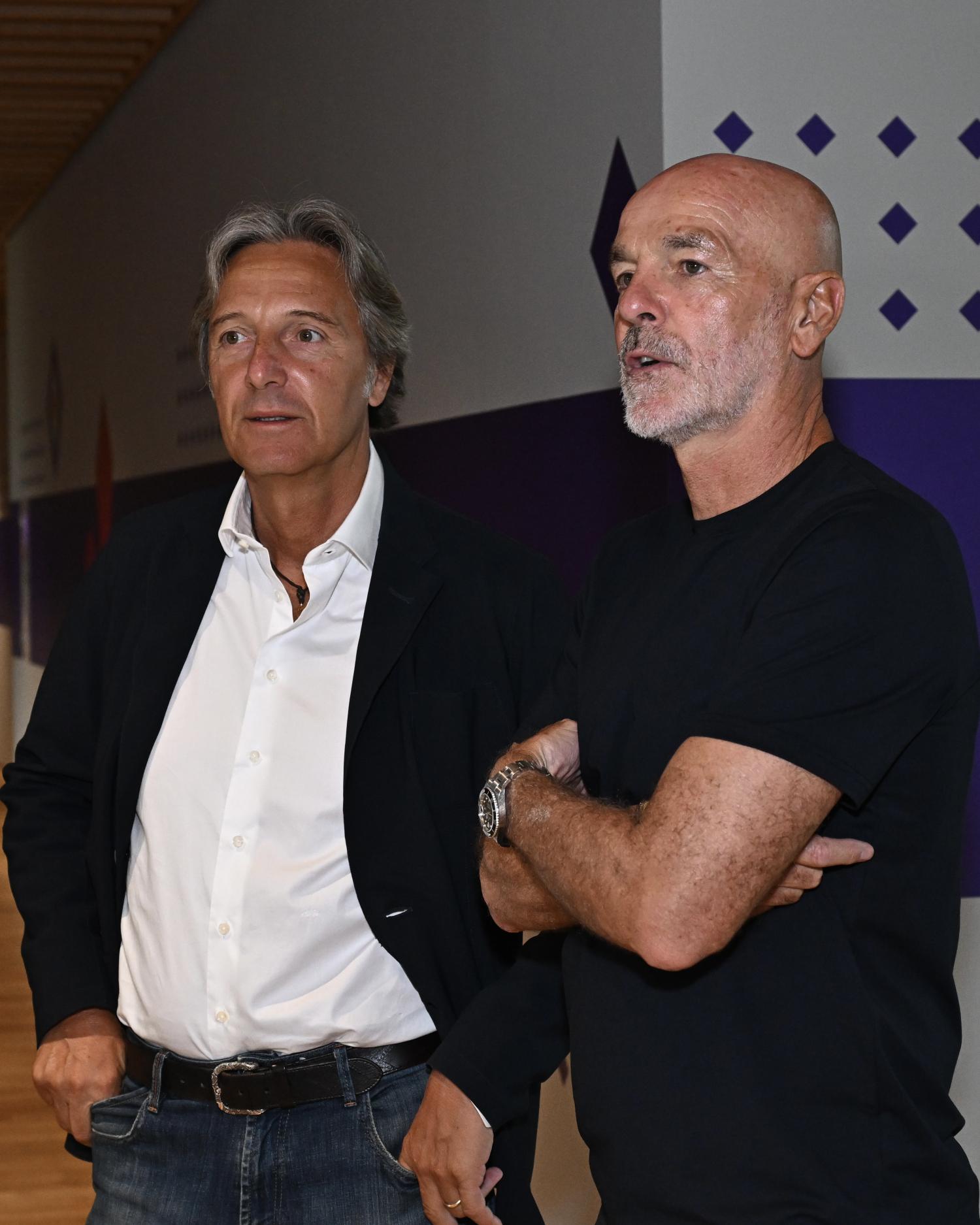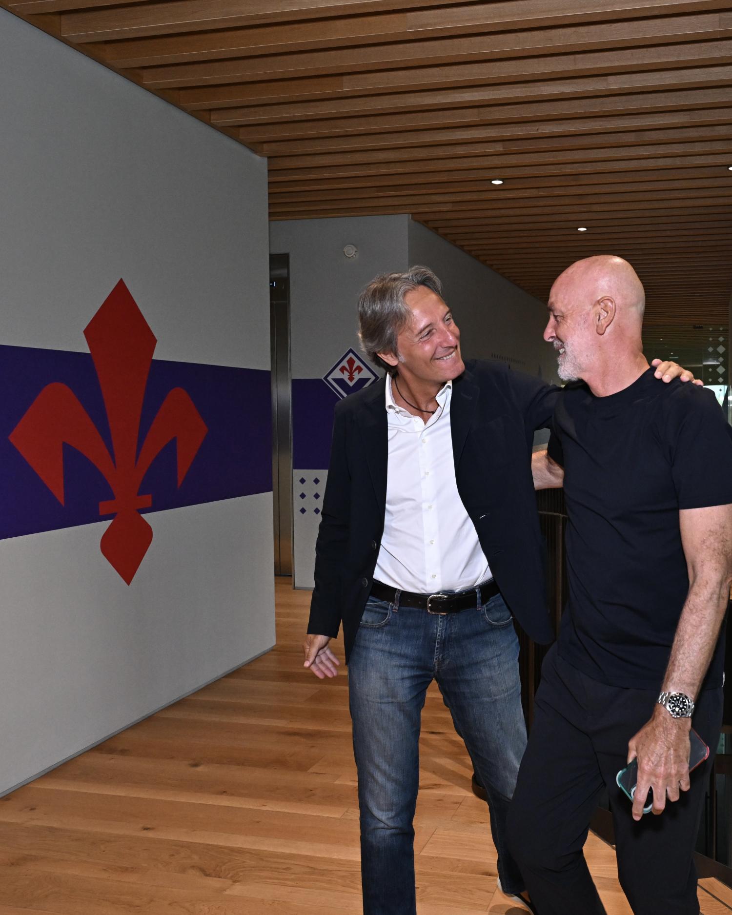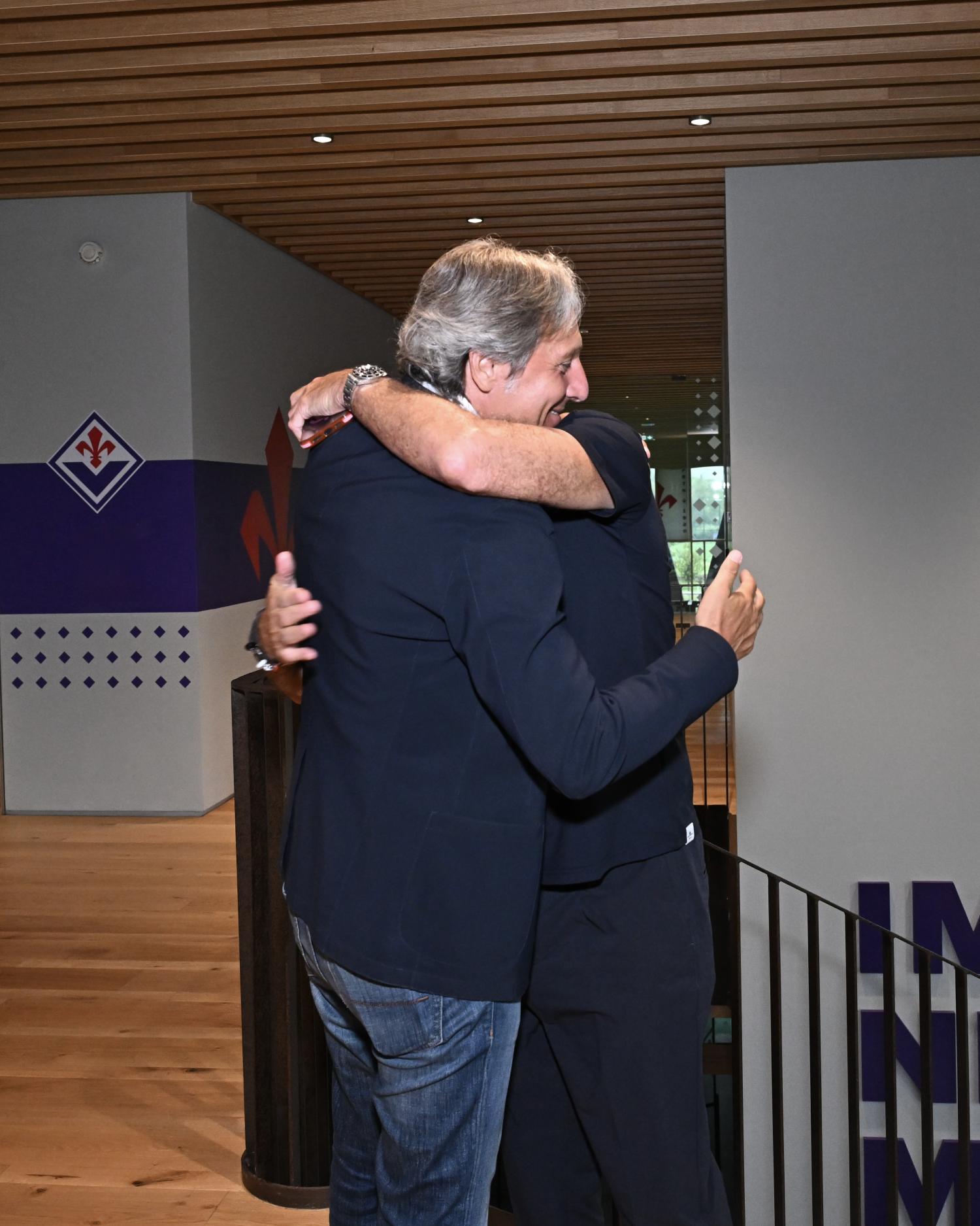 L'accoglienza dei dirigenti della Fiorentina a Pioli: l'abbraccio con Ferrari (foto)
