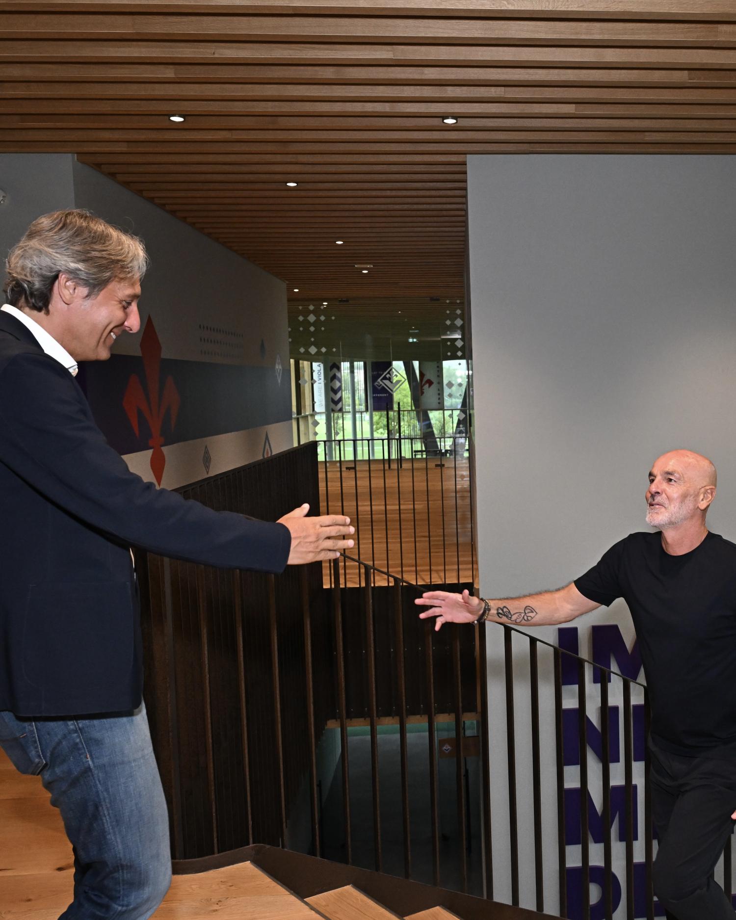 Stefano Pioli nelle ore scorse ha fatto il suo ingresso al Viola Park per iniziare la sua terza avventura nella Fiorentina. Ad accoglierlo il direttore generale Alessandro Ferrari che con Pioli ha lavorato in un altro ruolo, quello di responsabile della comunicazione e che ricopriva quando il tecnico di parma ha fatto le due precedenti stagioni da allenatore della Fiorentina. In sede anche il direttore sportivo Daniele Pradè che con l'allenatore dovrà assemblare la nuova rosa viola, anche se i colloqui sono iniziati da tempo. Per Stefano Pioli si è trattato del primo ingresso al centro sportivo viola visto che è stato costruito e inaugurato con Vincenzo Italiano in panchina. Ecco le immagini postate dalla Fiorentina stessa.