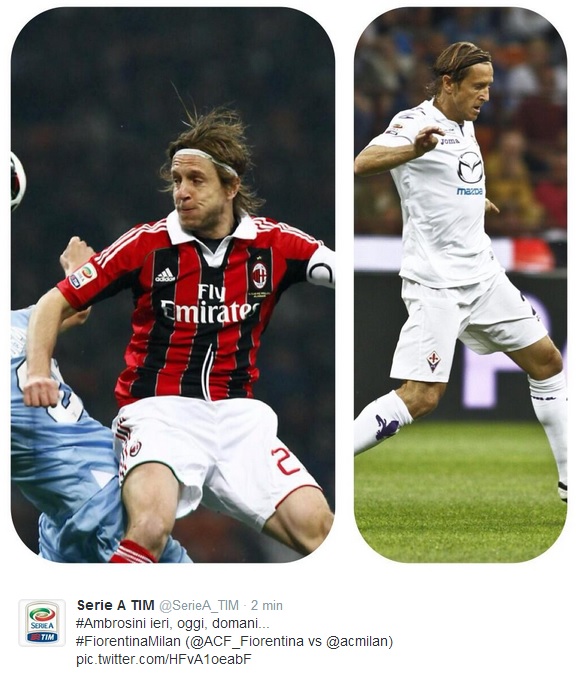 In vista della gara di stasera tra Fiorentina e Milan, in programma all'Artemio Franchi di Firenze, la Lega Serie A, attraverso il proprio profilo Twitter ufficiale, ha voluto tributare Massimo Ambrosini, ex capitano rossonero che stasera si troverà di fronte i suoi ex compagni.