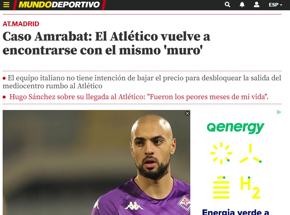 Il Mundo Deportivo parla ancora di Sofyan Amrabat ma sotto un'altra luce: "Caso Amrabat: l’Atletico incontra di nuovo lo stesso ‘muro'”, è il titolo del quotidiano online. Il club di Simeone è tornato alla carica per il centrocampista marocchino dopo la partenza più che probabile di Kondogbia verso il Marsiglia. Amrabat vuole giocare nella Liga e l’Atletico ha bisogno di un giocatore in quella posizione, il grande problema ha però un nome e un cognome: Rocco Commisso. Il presidente della Fiorentina non intende, almeno per il momento, ridurre la cifra richiesta, ovvero 30 milioni.