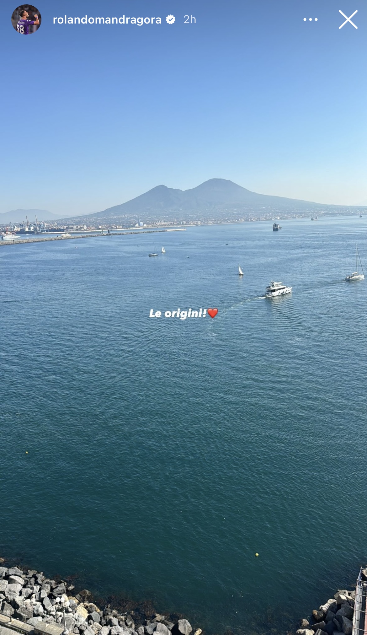 A poche ore dal match contro il Napoli, Rolando Mandragora, tramite le proprie storie Instagram, ha postato una foto del capoluogo campano, sua città natale, con scritto "Le origini!". Di seguito la storia del centrocampista viola: