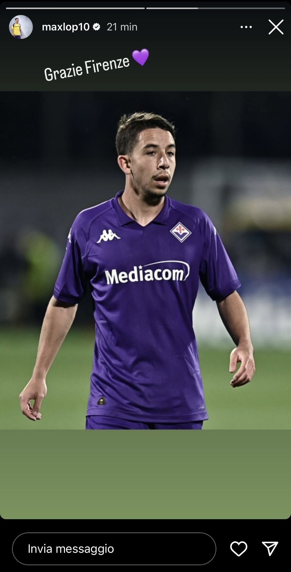 MAXIME LOPEZ, Intanto ringrazia Firenze sui social