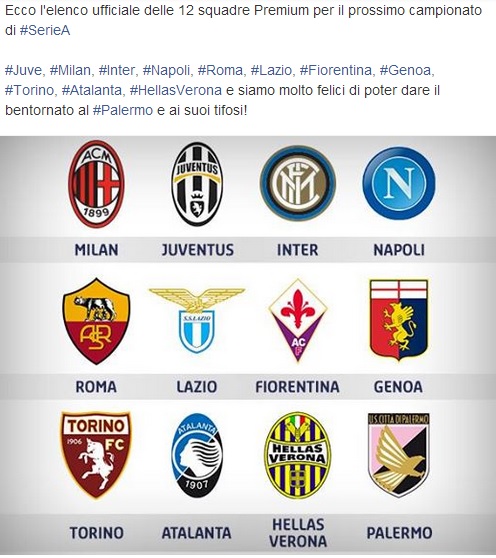 Attraverso la propria pagina ufficiale Facebook, Premium Calcio ha comunicato le dodici squadre che saranno visibili su Mediaset per la stagione 2014/2015. La Fiorentina è tra queste e quindi tutti gli abbonati alla pay tv sul digitale terrestre potranno continuare a vedere la squadra di Montella. Ecco nel dettaglio le dodici squadre: