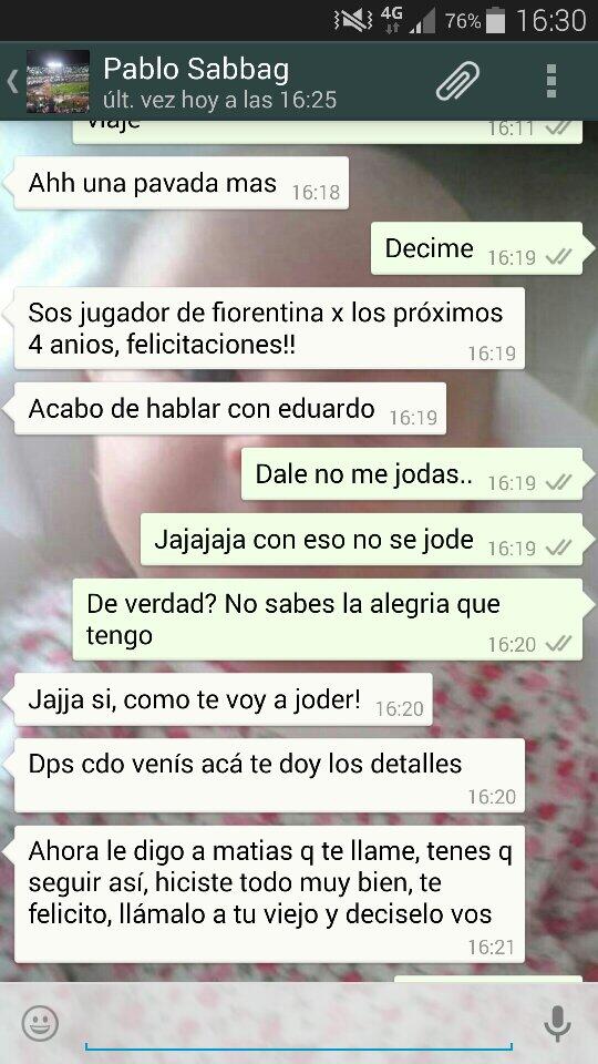 Il giovane Nicolas Minutella, che negli scorsi mesi si è allenato con la Primavera viola, è pronto a firmare il suo primo contratto da professionista con la Fiorentina. La notizia arriva direttamente dal giocatore, che sul suo profilo twitter ha postato una foto di una conversazione col suo agente Pablo Sabbag: "Sarai un giocatore della Fiorentina per i prossimi quattro anni, complimenti!"