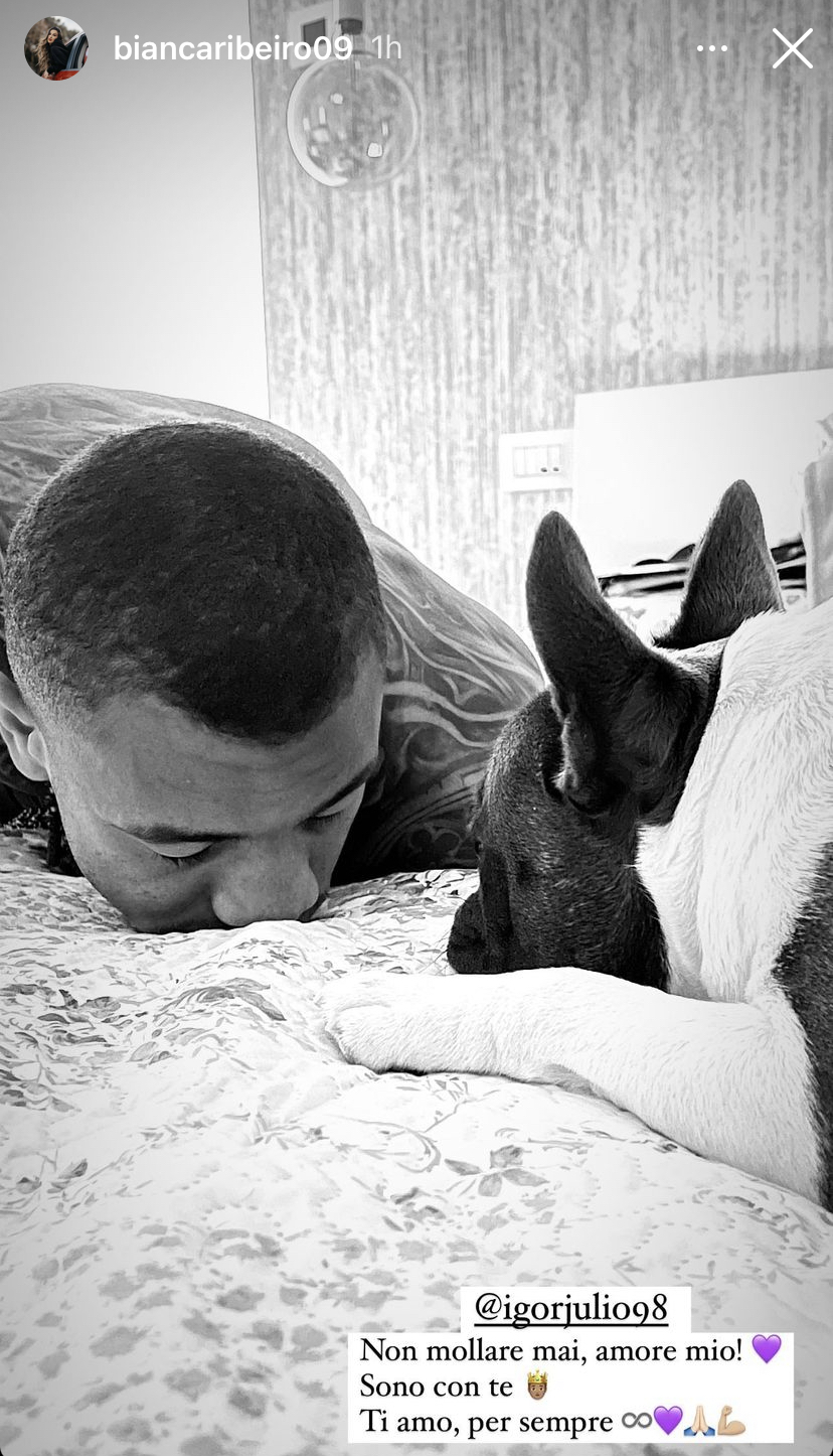 Bel messaggio di solidarietà di Bianca Ribeiro al compagno Igor. Il difensore viola ieri è stato protagonista in negativo della partita ed evidentemente ha accusato il colpo, dopo una stagione giocata in crescendo. Così la moglie lo immortala in una tenera foto del giocatore con la testa rivolta verso il letto, sconsolato e avvilito, insieme al cagnolino e, come in una carezza per confortarlo, scrive: "Non mollare mai, amore mio. Sono con te. Per sempre insieme".
