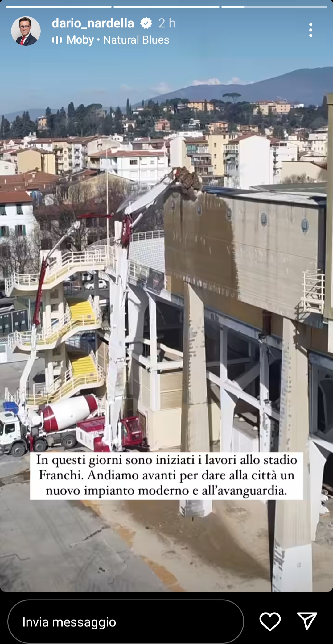 In vista della partita di stasera contro la Lazio al Franchi, il sindaco di Firenze Dario Nardella ha celebrato l'inizio dei lavori in Curva Ferrovia nell'impianto di Firenze. "In questi giorni - ha scritto su Instagram il primo cittadino - sono iniziati i lavori allo stadio Franchi. Andiamo avanti per dare alla città un nuovo impianto e all'avanguardia".