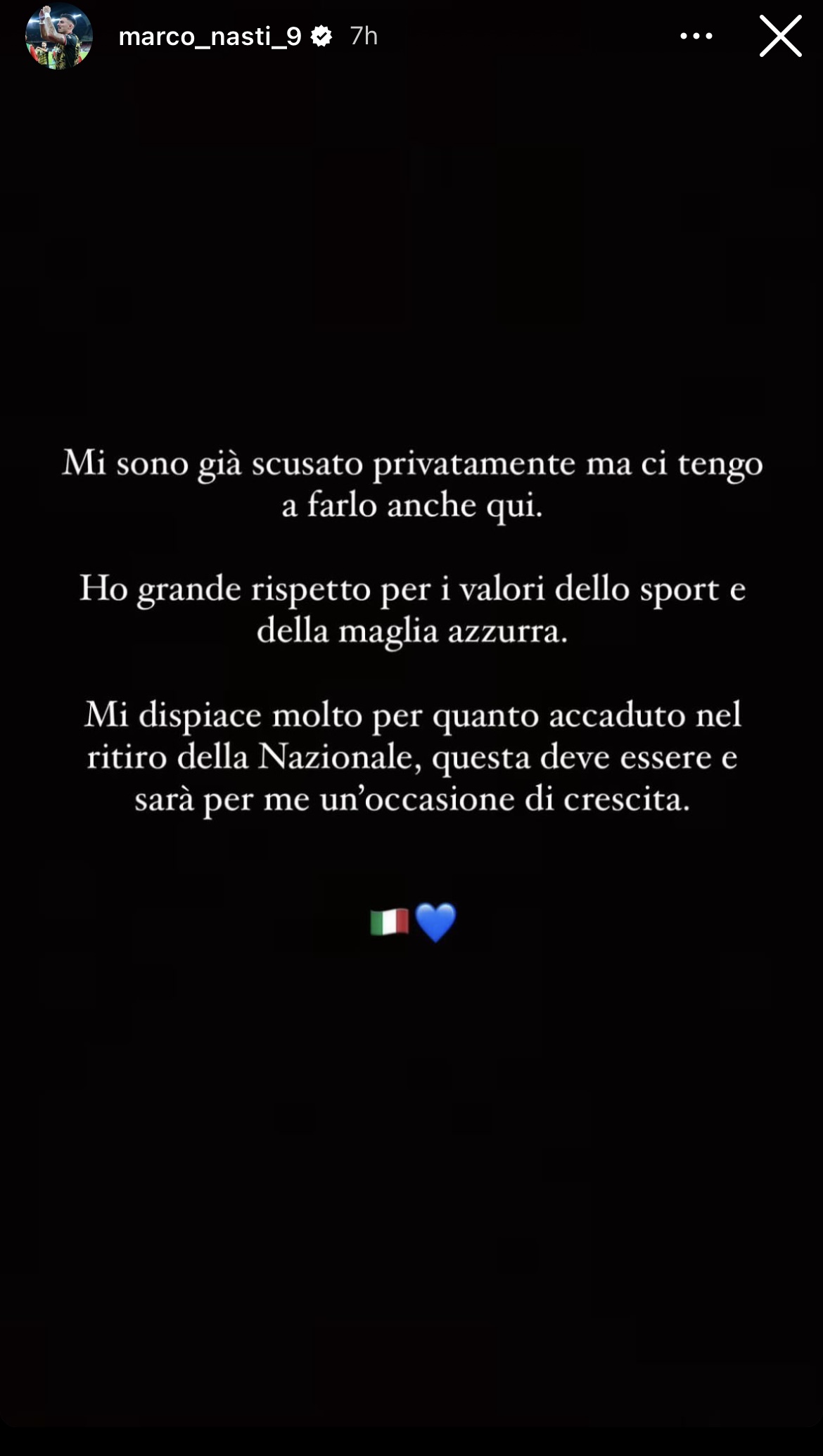 NASTI, Le scuse social dopo il brutto episodio in Nazionale