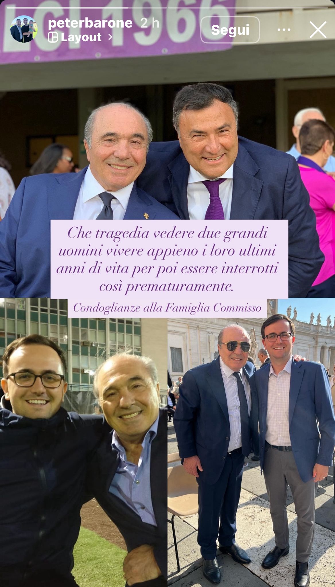 Pietro Barone, figlio di Joe Barone, ex amministratore delegato della Fiorentina scomparso nel marzo del 2024, ha voluto ricordare il presidente viola Rocco Commisso attraverso alcune storie Instagram. "Che tragedia vedere due grandi uomini vivere appieno i loro ultimi anni di vita per poi essere interrotti così prematuramente. Condoglianze alla famiglia Commisso". Questo il messaggio a contorno di alcune sue foto con Commisso a cui poi ha fatto seguito un video che ritrae il patron viola intento a suonare il pianoforte.