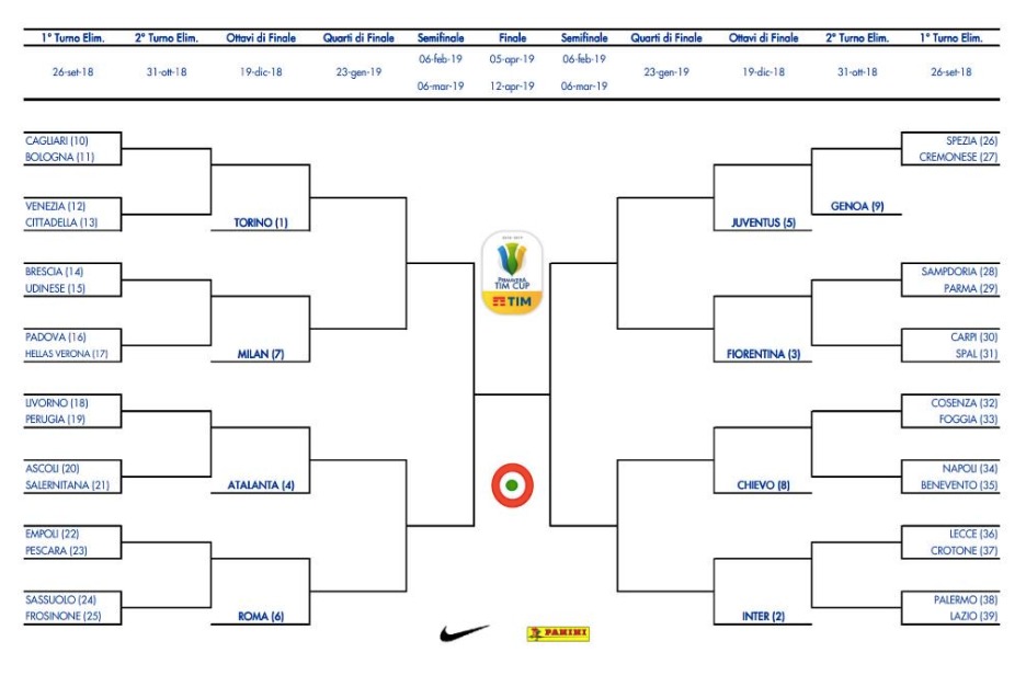 PRIMAVERA, Il tabellone completo della Coppa Italia
