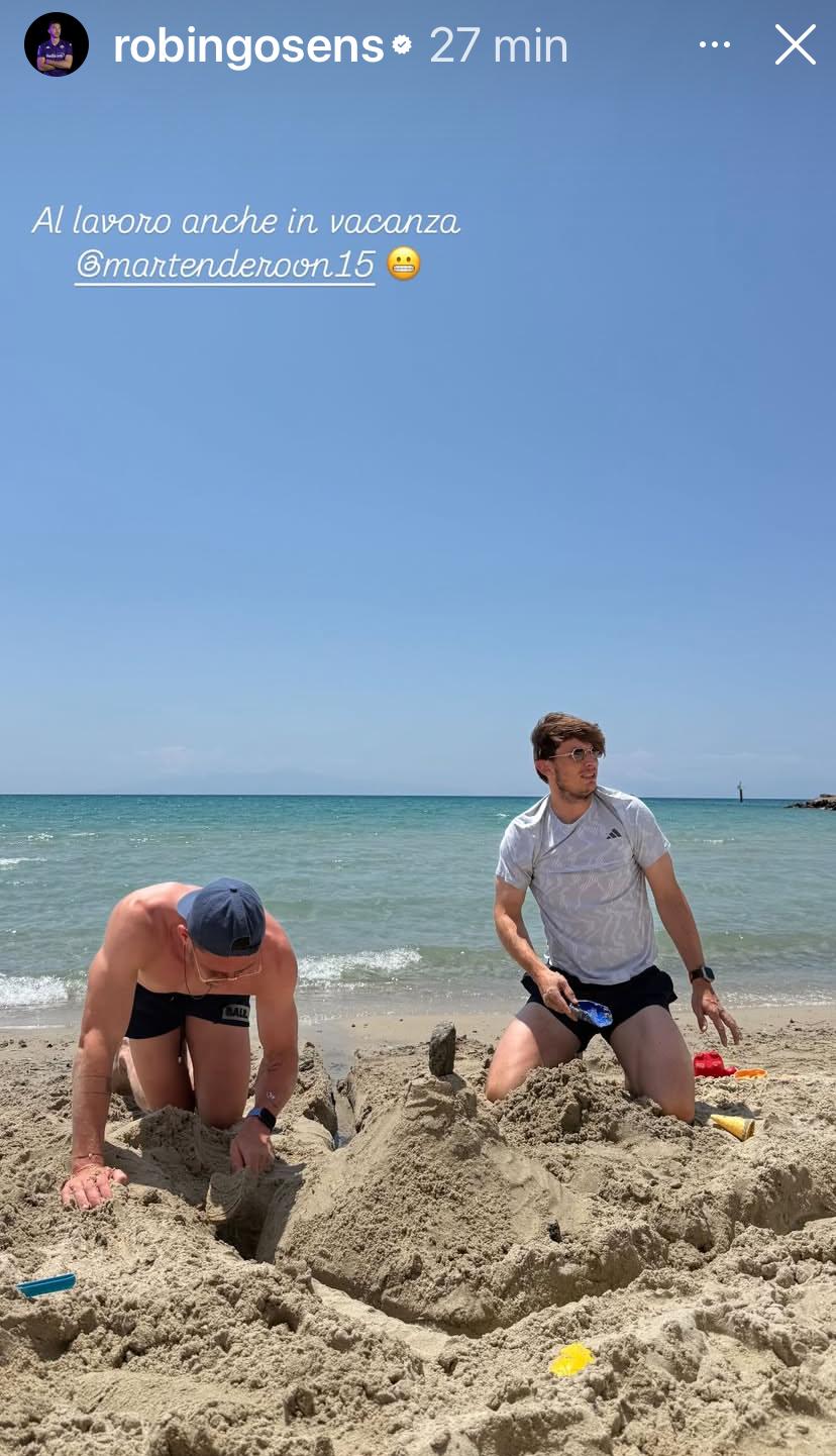 Un po' di relax per Robin Gosens. Il terzino della Fiorentina ha postato una foto in spiaggia con l'ex compagno di squadra ai tempi dell'Atalanta, nonché grande amico, Marten de Roon. Poche settimane fa è scattato il riscatto obbligatorio da 7,5 milioni di euro del difensore tedesco. Questa la storia Instagram del giocatore: