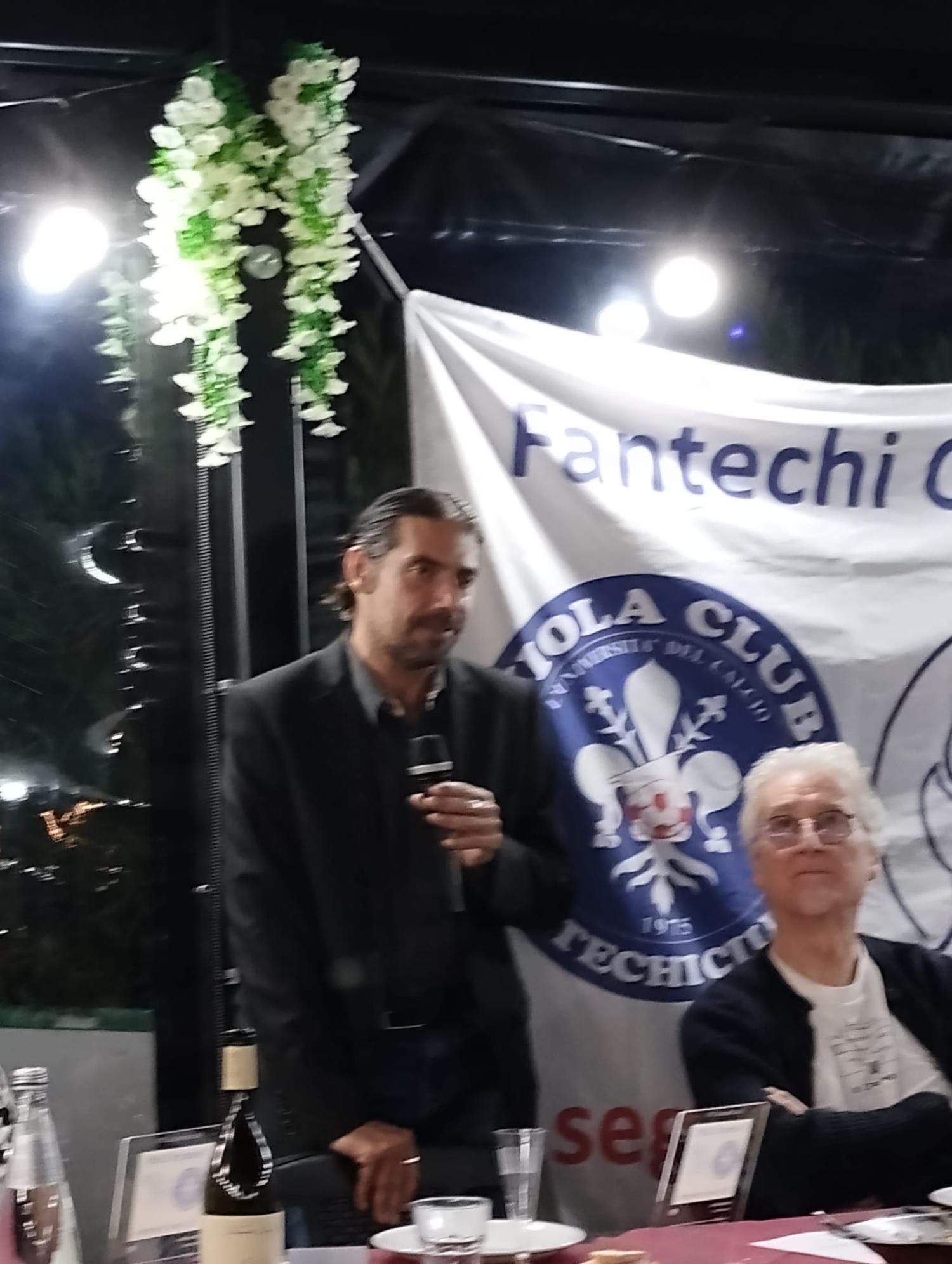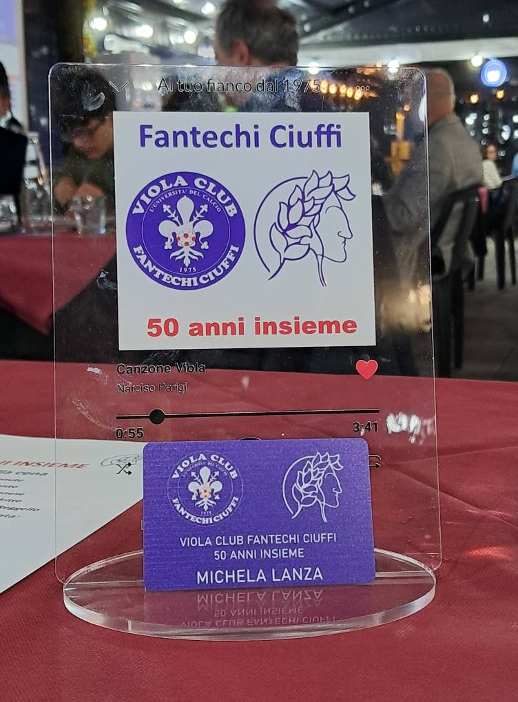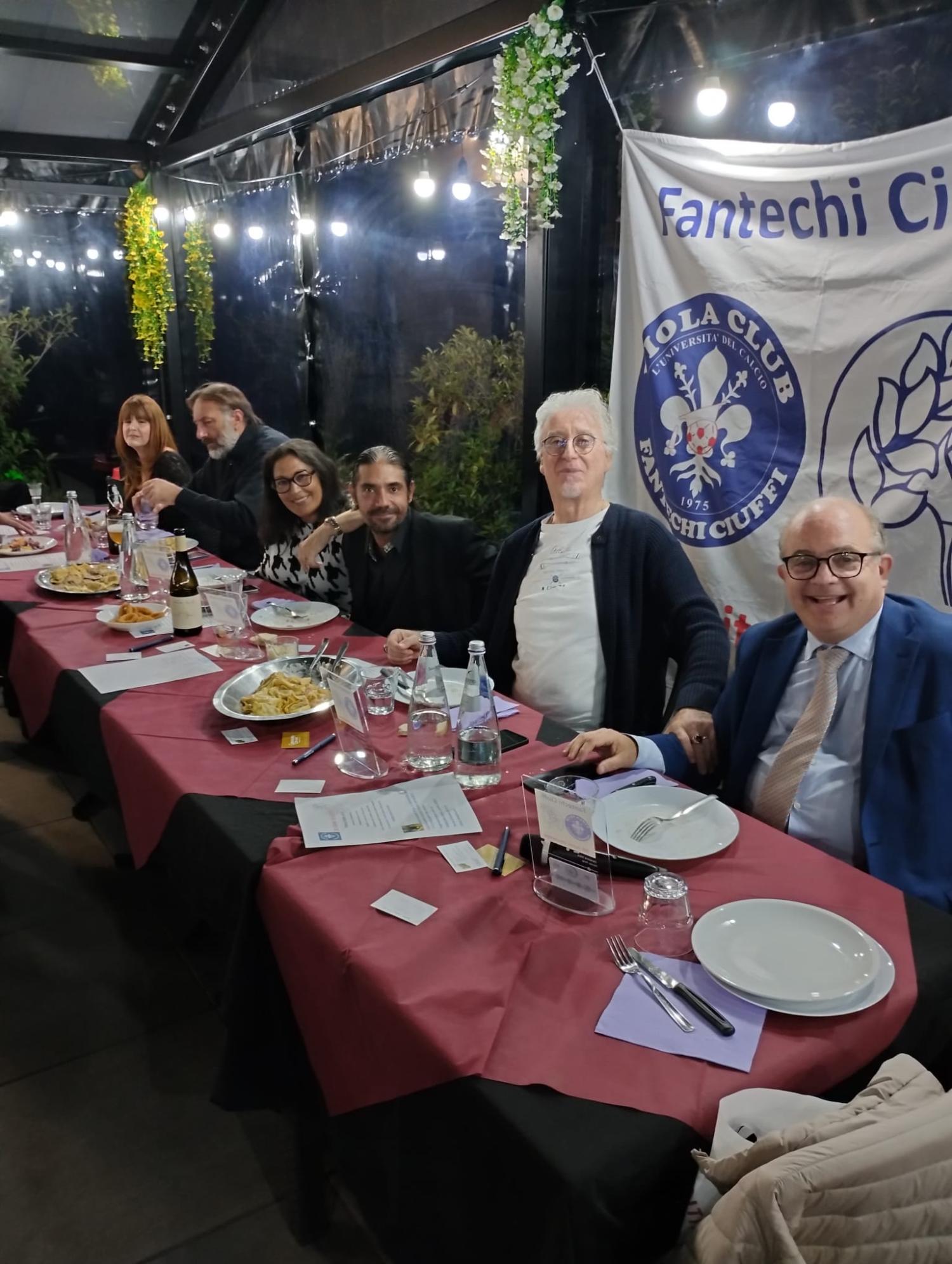 Ha festeggiato ieri sera i suoi 50 anni di vita il Viola Club Fantechi-Ciuffi nello scenario del Palacoverciano. Una bella serata per celebrare uno dei Viola Club più antichi dell'universo Fiorentina nato grazie alla passione di Mario Fantechi e cresciuto negli anni sotto la guida di Mario Ciuffi prima e Filippo Pucci poi, oggi presidente del Centro Coordinamento Viola Club. Oltre al direttore di Firenzeviola e Radio Firenzeviola Tommaso Loreto e Chiara Andrea Bevilacqua, apprezzata voce di Radio Firenzeviola, e alla giornalista di Radio Bruno Michela Lanza è intervenuto anche l'ex bomber viola Christian Riganò. Una cena cui hanno partecipato un centinaio di soci del club terminata con una lotteria ha celebrato un compleanno importante come quello dei 50 anni e soprattutto ha ribadito passione e fedeltà ai colori viola di un gruppo di tifosi e appassionati che continuerà a restare al fianco della Fiorentina.