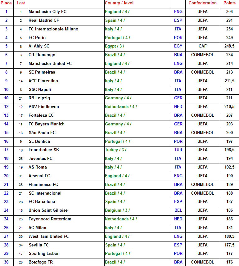 L'IFFHS, Federazione Internazionale di Storia e Statistica del Calcio, ha aggiornato la classifica del ranking mondiale per club dal 30 settembre 2022 al 1 ottobre 2023. In testa alla classifica resta il Manchester City, seguito dal Real Madrid. La Fiorentina, grazie ai successi ottenuti, in campionato, dove attualmente è quarta e l'anno scorso si è posizionata ottava e nelle due coppe, Coppa Italia e Conference League, dove è arrivata in finale, ha totalizzato 211,5 punti e si posiziona nona, sopra il Napoli, fermo a 211 punti e la Juventus a soli 194 punti. Tra i club italiani solamente l'Inter ha fatto meglio della Viola, arrivando in finale di Champions League, terza in campionato (attualmente prima) e vincendo la Coppa Italia proprio contro la squadra di Vincenzo Italiano.