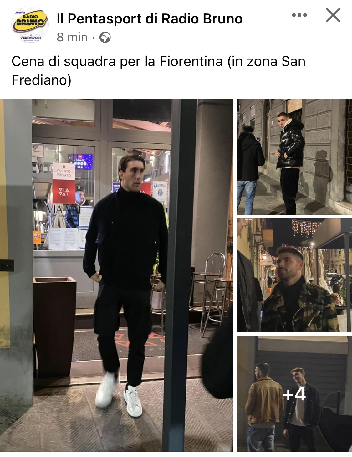 Cena di squadra per i giocatori della Fiorentina questa sera. Gli uomini di mister Vincenzo Italiano, infatti, si sono riuniti in un noto ristorante fiorentino, in zona San Frediano, per fare gruppo e passare una serata tutti insieme. Queste le foto pubblicate da Radio Bruno sulla propria pagina Facebook: