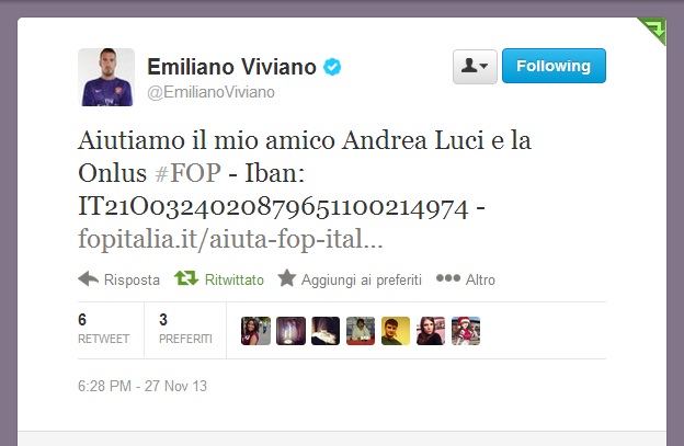 Anche Emiliano Viviano, ex portiere viola, ha voluto dare il sostegno alla campagna per la lotta alla F.O.P. che ha colpito il figlio di Andrea Luci. Come il capitano del Livorno, anche Viviano è tifoso viola, e insieme i due hanno giocato nelle giovanili della Fiorentina prima del fallimento del 2002. Viviano ha postato su Twitter il messaggio: "Aiutiamo il mio amico Andrea Luci e la Onlus #FOP - Iban: IT21O0324020879651100214974".