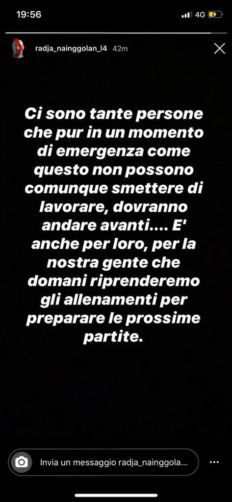 Il calcio italiano continua a prendere posizione sull'opportunità o meno di scendere in campo al tempo del Coronavirus. Dopo le esternazioni via social di Tommasi e di Balotelli, oggi pomeriggio anche il tecnico del Cagliari Walter Zenga e il suo giocatore Radja Nainggolan hanno esposto su Instagram il proprio pensiero, che va però in controtendenza rispetto a quelli di ieri: "Tanti lavoratori devono continuare a portare a casa il pane e non possono scegliere di fermarsi. Per rispetto verso di loro e verso il nostro popolo noi continiuiamo ad allenarci in silenzio, per preparare le prossime gare" il post del tecnico, molto simile a quello del belga.