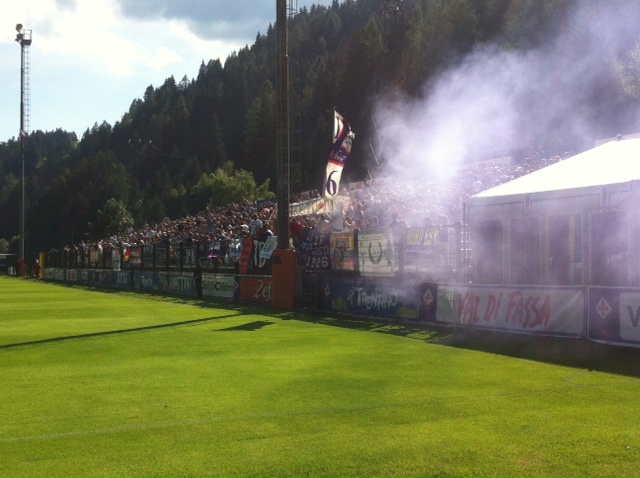 Ultima amichevole stagionale della Fiorentina al "Benatti" di Moena. Davanti a circa 2000 tifosi viola (molti dei quali saliti solo oggi da Firenze), la Fiorentina priva di Giuseppe Rossi (nemmeno in panchina anche oggi) affronta i neo-promossi greci dell'Ael Kalloni (squadra dell'isola di Lesbo).