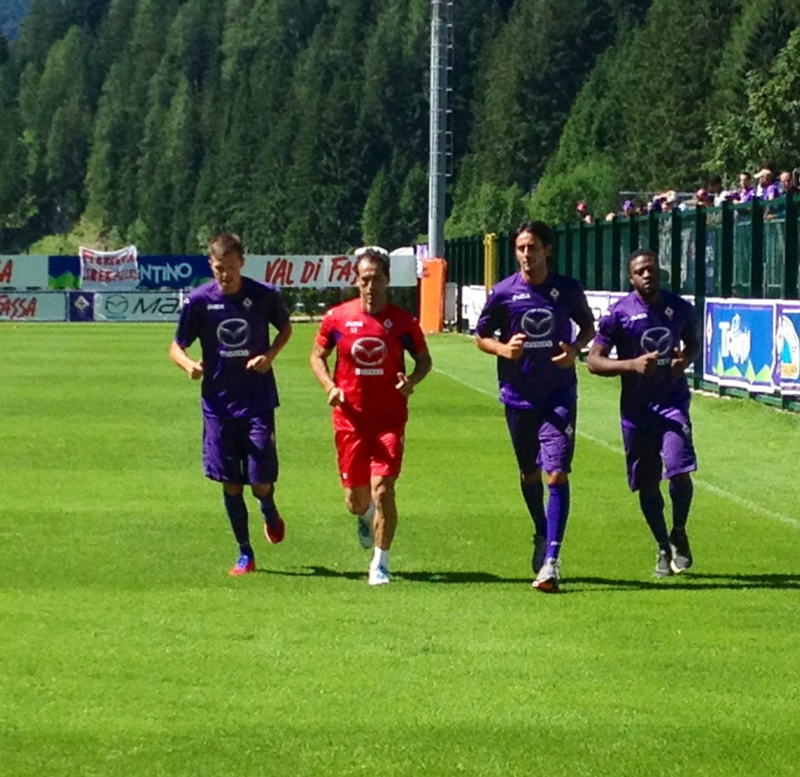 Dopo una ventina di minuti di riscaldamento in palestra, primo giro di campo in Trentino vestito di viola da parte di Josip Ilicic. Insieme a lui anche Alberto Aquilani rientrato in anticipo rispetto al programma che lo dava in arrivo a Moena lunedì prossimo. In campo ci sono anche Agyei, Matos, El Hamdaoui, Salifu e Romulo. Applausi da parte dei circa duecento tifosi presenti sugli spalti.