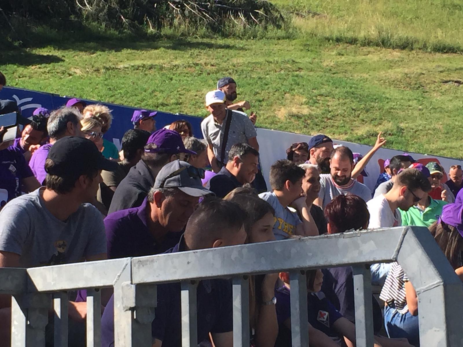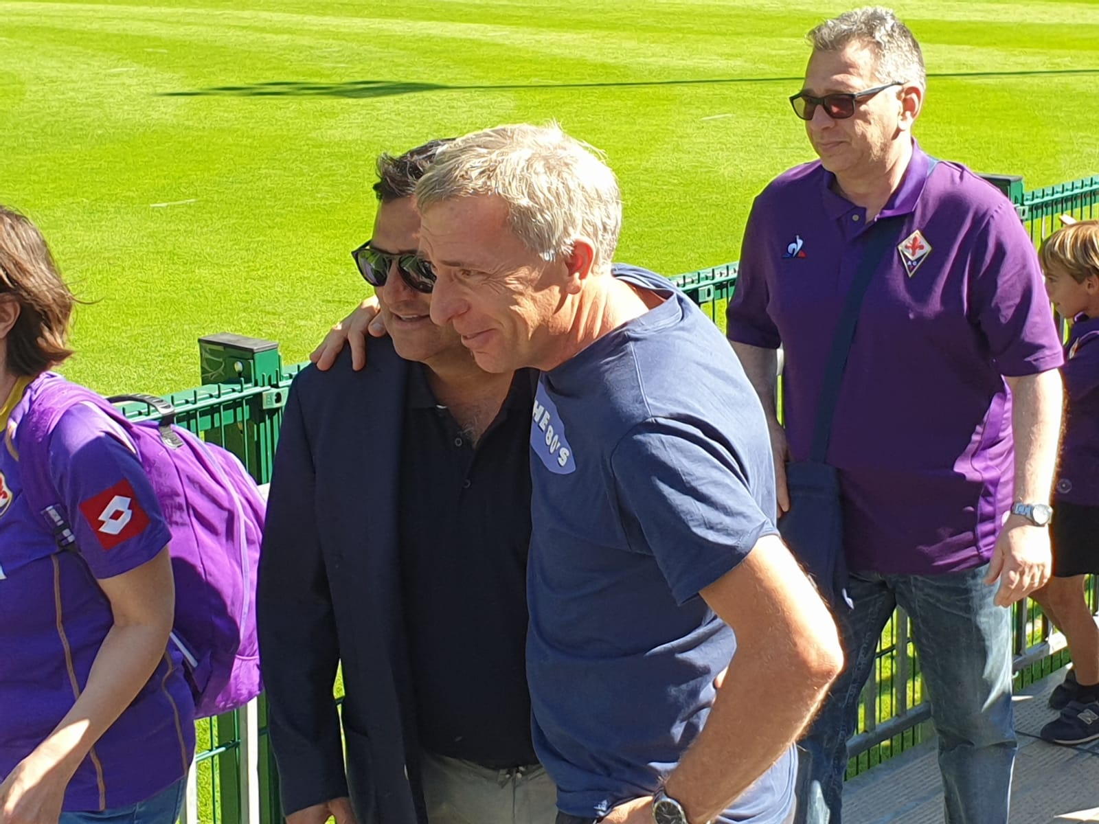 Bagno di folla presso la tribuna del Cesare Benatti di Moena per Joe Barone che pochi minuti dopo essere arrivato al campo ha deciso di superare le reti del campo da gioco per tuffarsi in mezzo ai tifosi che lo hanno letteralmente preso d'assalto per avere una foto e per scambiare una battuta col manager viola. Ecco la foto di Firenzeviola.it:
